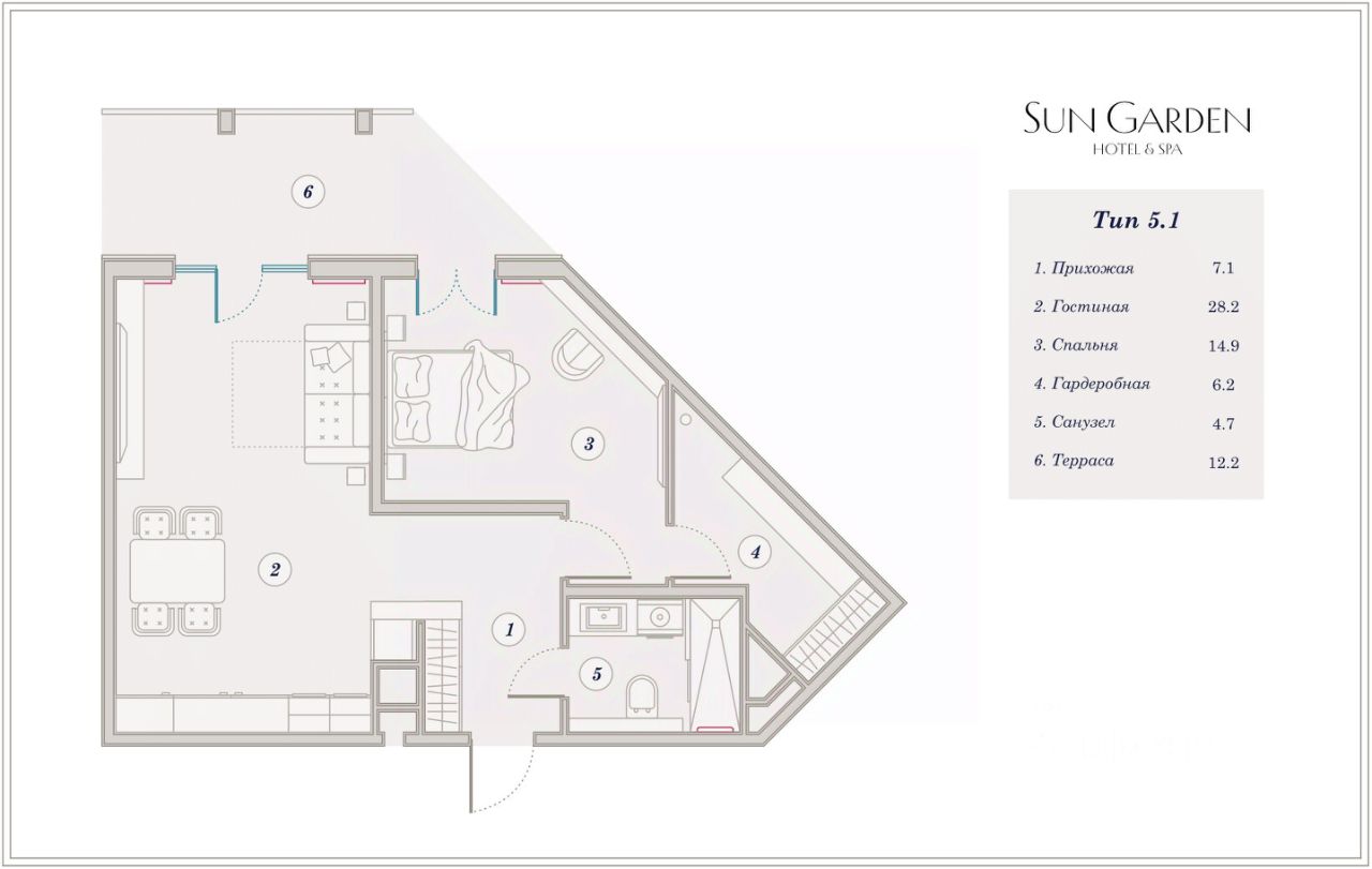 Преимущества отеля ''Sun Garden'': - дизайнерская мебель, рестораны и SPA-центр - здесь каждая деталь продумана для вашего комфорта вплоть до удобных тапочек, - Территория ''Sun Garden'' - это 5 ГА уютного, эргономичного и вдохновляющего пространство, где вы можете наслаждаться каждым моментом. - Фитнес-зал, SPA-центр, кристально чистые бассейны, летние бары, детские клубы - здесь есть все для вашего отдыха и развлечений. - Современный SPA-комплекс с широким спектром релаксационных процедур и заботливыми специалистами для вашего удовольствия. - Идеальное сочетание спорта и отдыха: фитнес-зал с кардио и силовыми тренажерами, а также детский клуб рядом для вашего удобства. - Два бассейна по 50 м под открытым небом, где каждый найдет что-то по душе: от детской зоны с аттракциями до бассейна для активного плавания. - Детский клуб с мастер-классами, развлекательными мероприятиями и заботливыми инструкторами - вашим детям будет интересно и увлекательно.