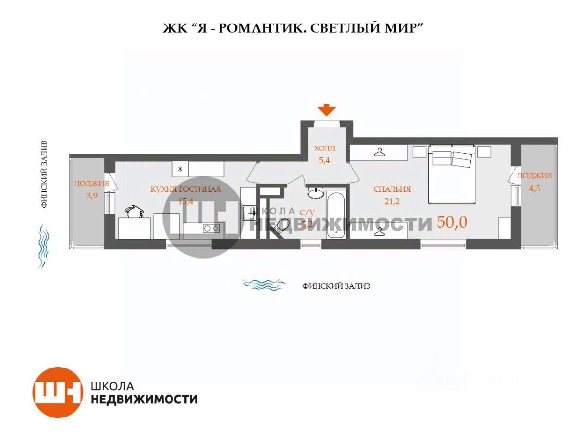 Мы продаём евро-двухкомнатную квартиру на 12-м этаже в современном комплексе ''Я Романтик'' по адресу: г. Санкт-Петербург, Бульвар Александра Грина 3, стр. 1.