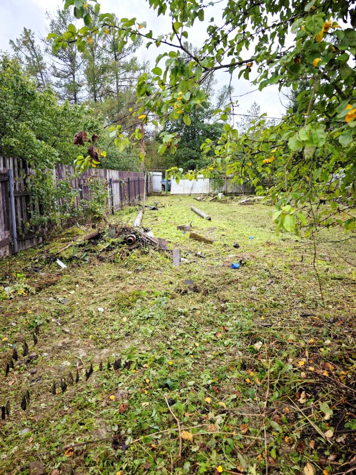 Что уже есть на участке: На территории имеется недостроенная баня, которую можно достроить по своему вкусу. По периметру растут взрослые плодовые деревья — яблони и сливы, которые уже дают урожай.