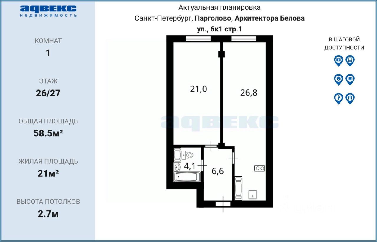 Отличная транспортная доступность, до метро 10 минут пешком.