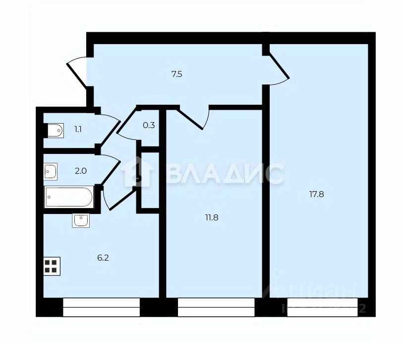 Просторная гостиная 17.8м2 и спальня 11.8м2