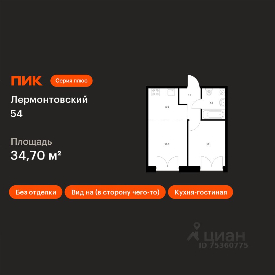 Продаётся 1-комн. квартира площадью 34,7 кв.м на 7 этаже 9 этажного дома (Корпус 2.2, Секция 13) проекта ПИК Лермонтовский 54. Светлый просторный подъезд на уровне земли, функциональная планировка, большие окна, без отделки.