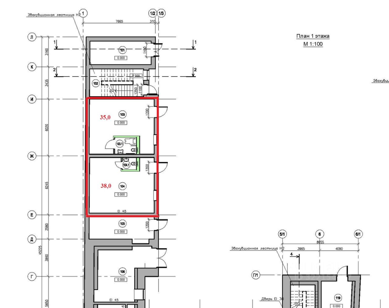Предлагаем в аренду офисные помещения в новом здании после полной реконструкции на 1 этаже = 73 кв.м (два помещения 35 и 38 кв.м со своими входами с улицы со двора).