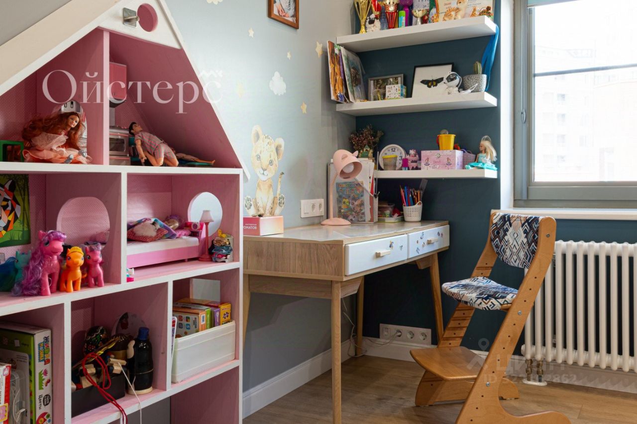Продуманная планировка включает гардеробную, спальню, кухню-гостиную, детскую, две ванные комнаты и кабинет, который при желании может быть легко переоборудован во вторую детскую.