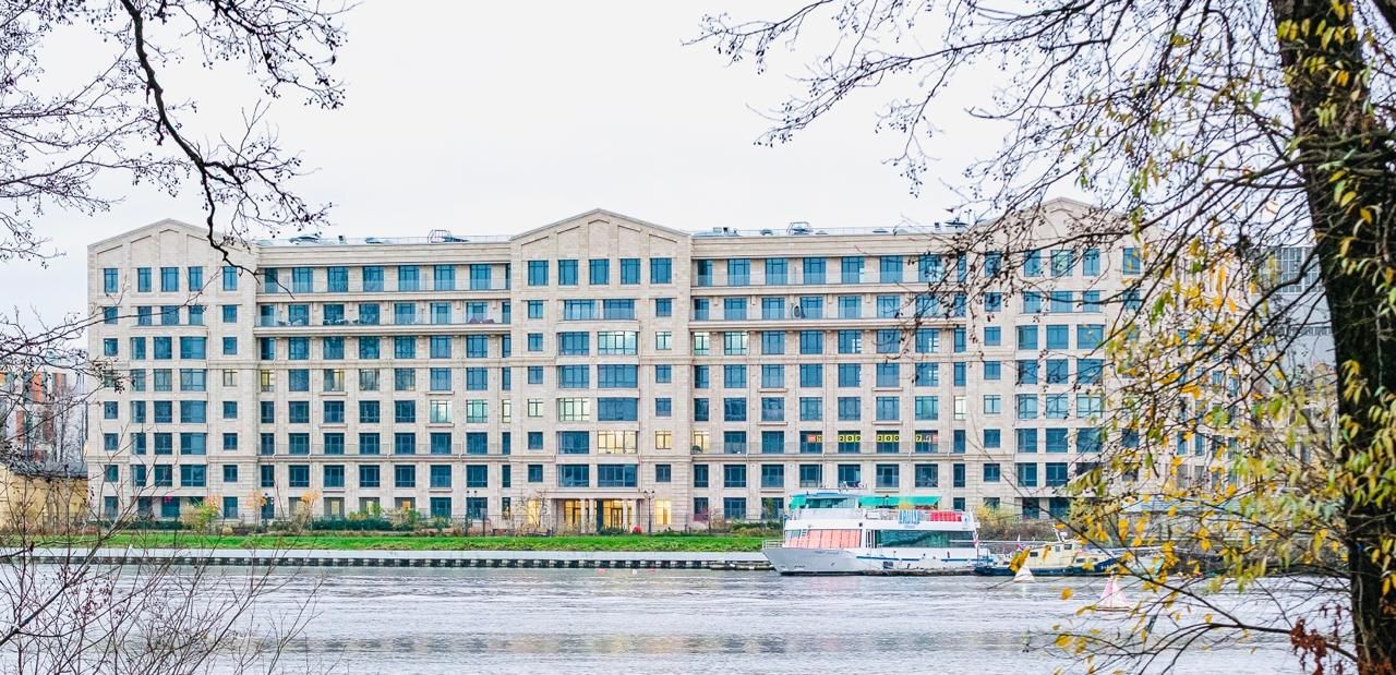 Статусный ЖК с фасадом из натурального юрского мрамора и закрытой территорией расположен на берегу Малой Невки у моста, ведущего на Южную дорогу Крестовского острова.