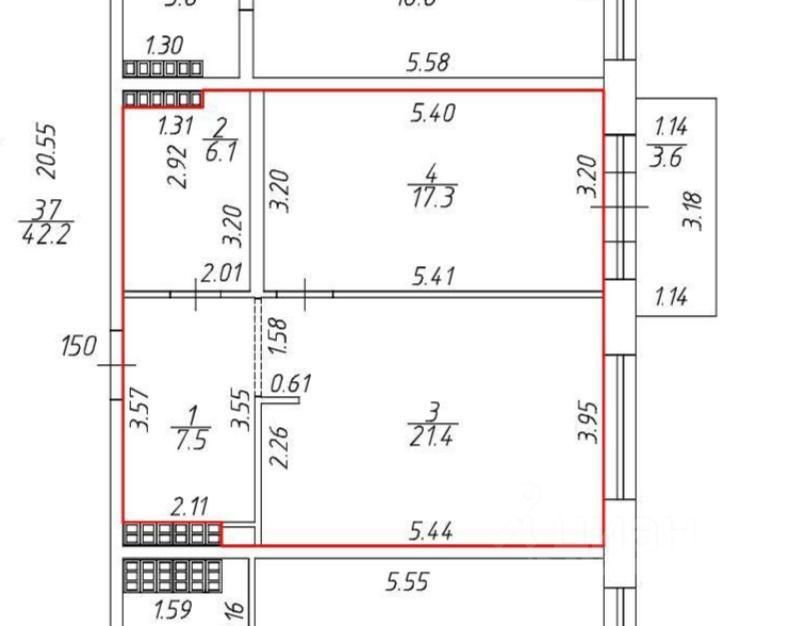 Квартира расположена на 7 этаже 8 этажного дома — окна в тихий двор.