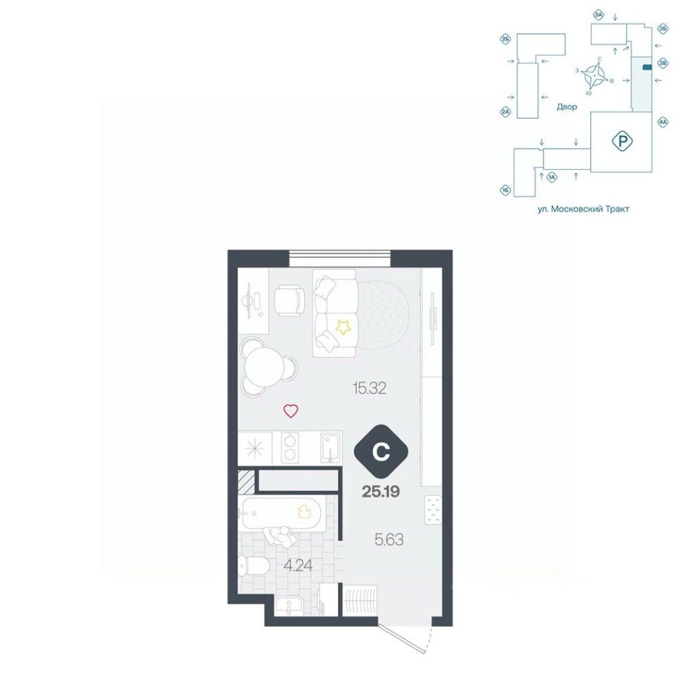 Уютная студия с большой ванной комнатой и прихожей, в которой поместится вместительный шкаф. Подойдет для студентов и свободных молодых людей.