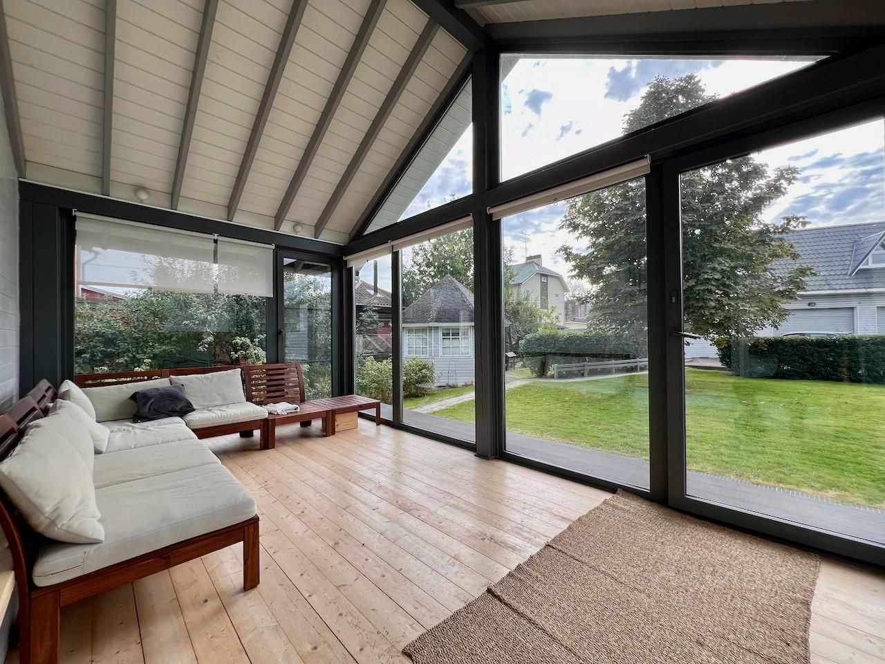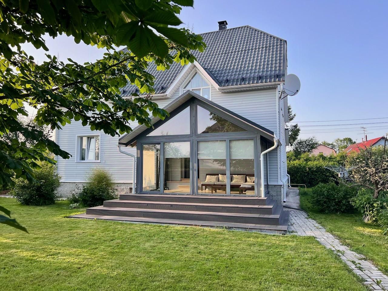 Почти в центре Красного села, но в то же время в уютном и тихом частном секторе продаем прекрасный дом для постоянного проживания. Хорошая транспортная доступность- рядом Гатчинское шоссе, Кингисеппское шоссе и Ивангородский проспект (объездная вокруг Красного Села). 6 минут на автобусе до ж/д станции Красное Село. 35 минут идет электричка до Балтийского вокзала. В пешей доступности большие парки Красного Села, центр города, магазины, школы и поликлиники, Гипер Лента. В доме три этажа: 1-й, 2-ой и цокольный. На первом этаже расположились пригожая, холл, большая кухня 26 м2, гостиная , кабинет и санузел. Из кухни выход на просторную веранду с окнами до пола, из которой отличный вид на уютный зеленый двор.