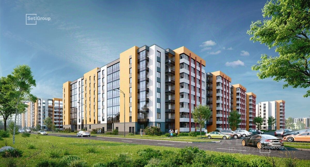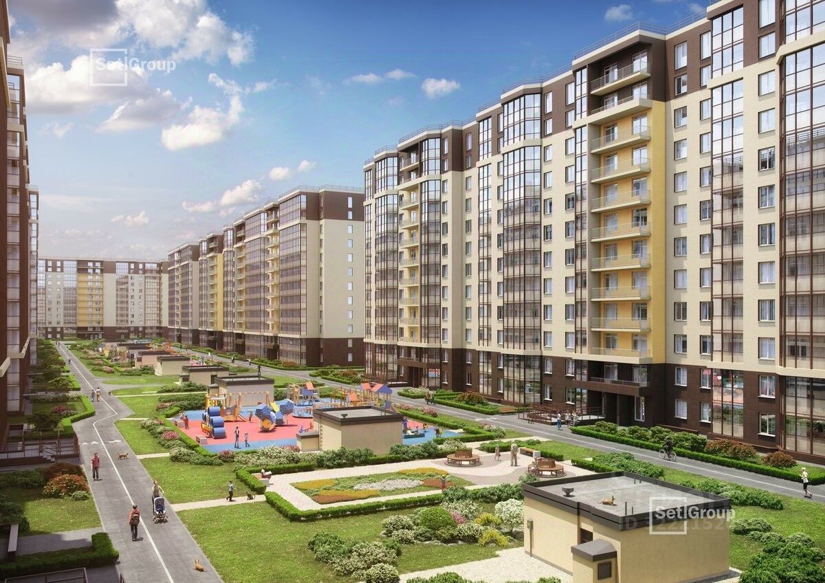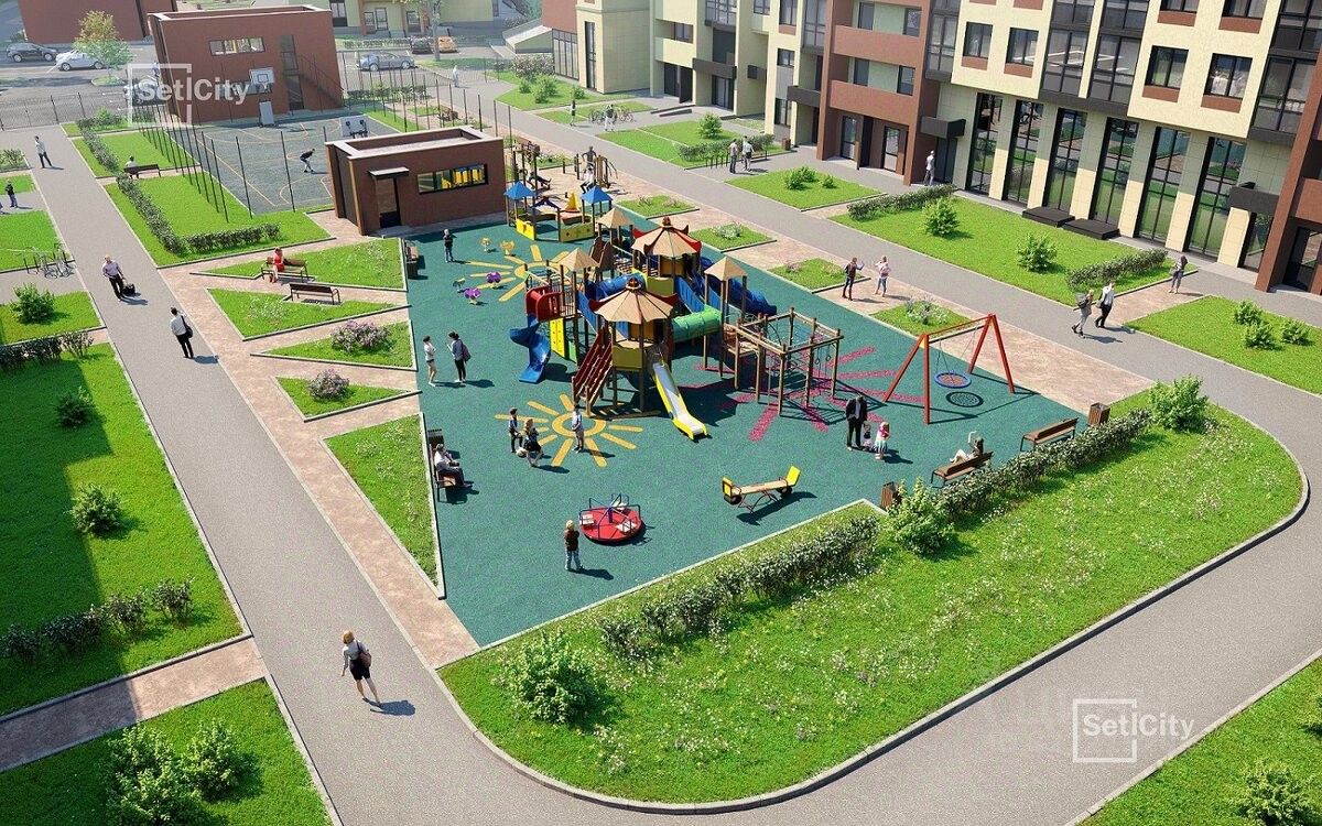 Первые очереди уже заселены Своя инфраструктура: два детских сада по 220 мест с бассейном, школа на 1375 учеников, магазины, аптеки, пекарни уже работают Торговый центр на территории Дома gj 8-12 этажей ''Дворы без машин'' с детскими игровыми площадками и зонами workout Подземные паркинги для автомобилей Придомовая территория, входные группы, детские площадки, паркинги, холлы под видеонаблюдением