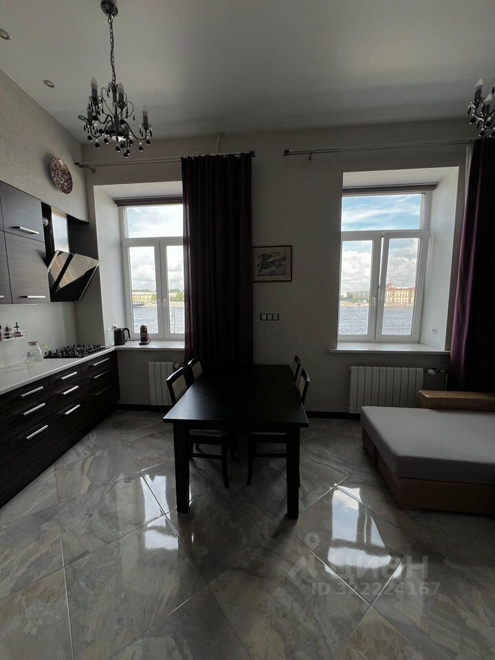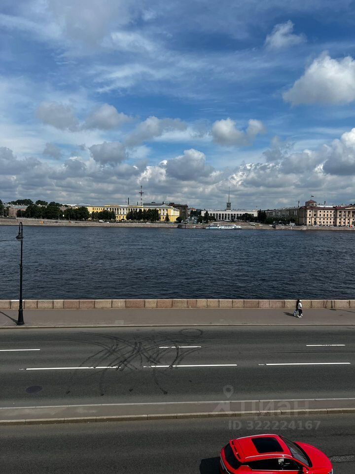 Окна выходят на две стороны, окно спальни (24 м.) выходит в тихий и просторный двор с детской площадкой и сквером для отдыха, два окна кухни- гостиной (25 м) выходят на набережную Невы, здание Финляндского вокзала, поющие фонтаны и Литейный мост.