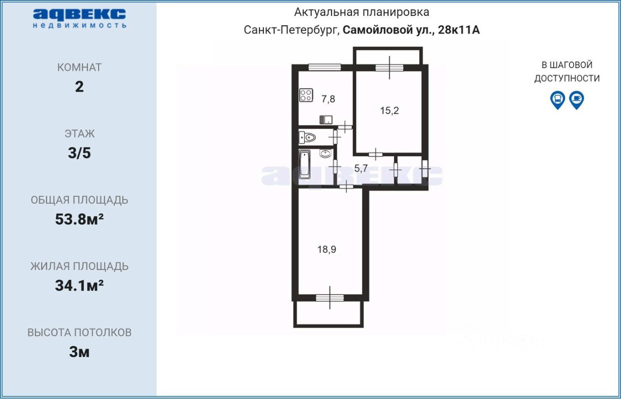продам 2-к, Самойловой, 28/1110 700 000 ₽