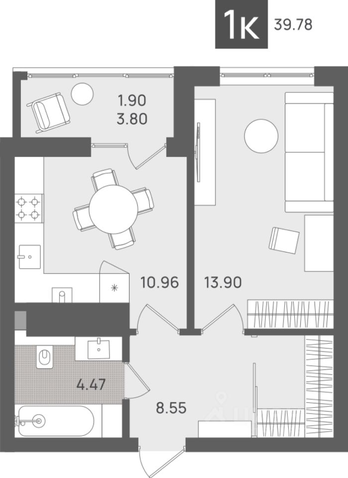 Общая площадь39,78 м2