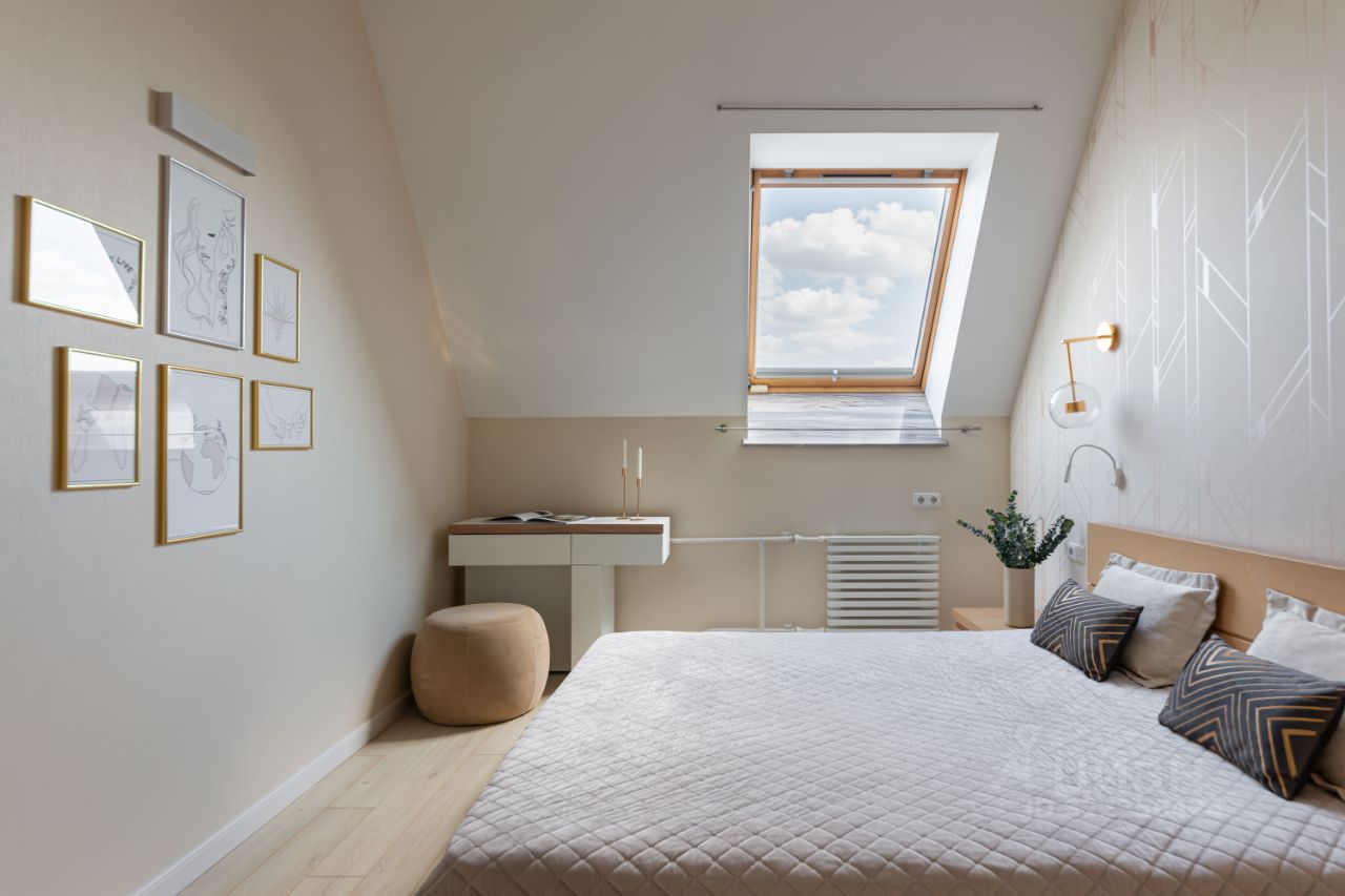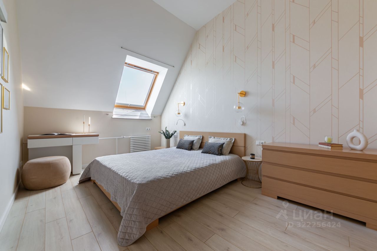 — светлая кухня-гостиная для уютных вечеров, — спальня с видом на небо сквозь окна крыши, — два санузла, — просторная гардеробная и постирочная, — потолки — до 4,14 м, создающие ощущение свободы.