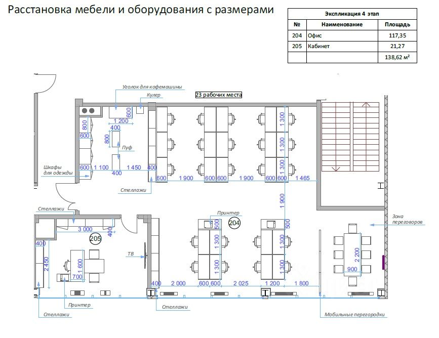 Уже готовы рабочие места для сотрудников. Всё новое. Также есть персональные шкафчики для хранения вещей сотрудников/верхней одежды.