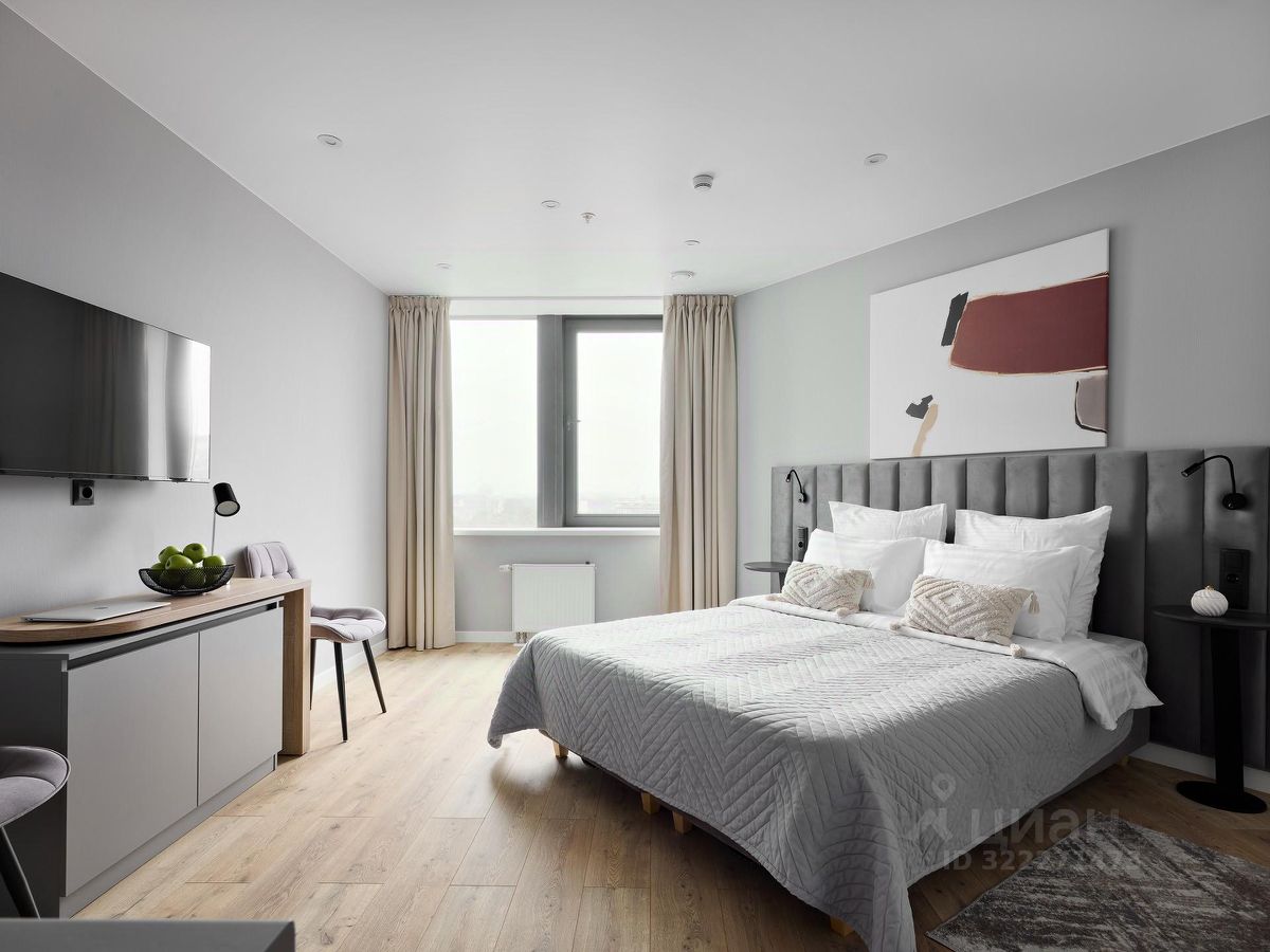 Уютная студия для комфортного проживания до 2 гостей Кровать 160x200 с ортопедическим матрасом Рабочая и обеденная зона с видом на город Шкаф, постельное белье, полотенца Шторы блэк-аут — идеальны для Белых ночей