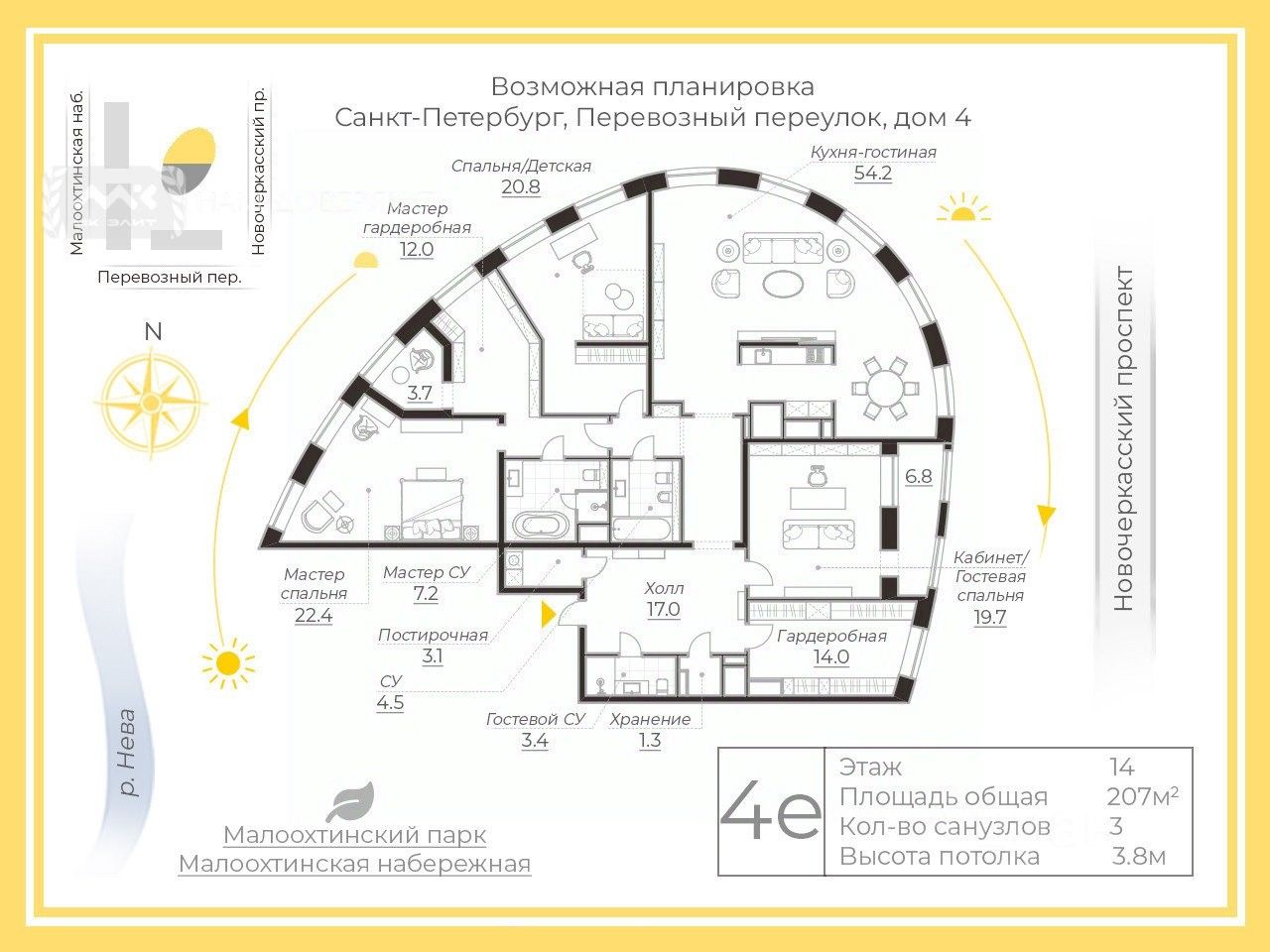 Арт. 117960135 Продается видовой пентхаус в ЖК ''Новый город'' с окнами в пол и высотой потолка 3,8 м. Общепрведенная площадь с учетом площади двух теплых лоджий 206,5 кв.м.