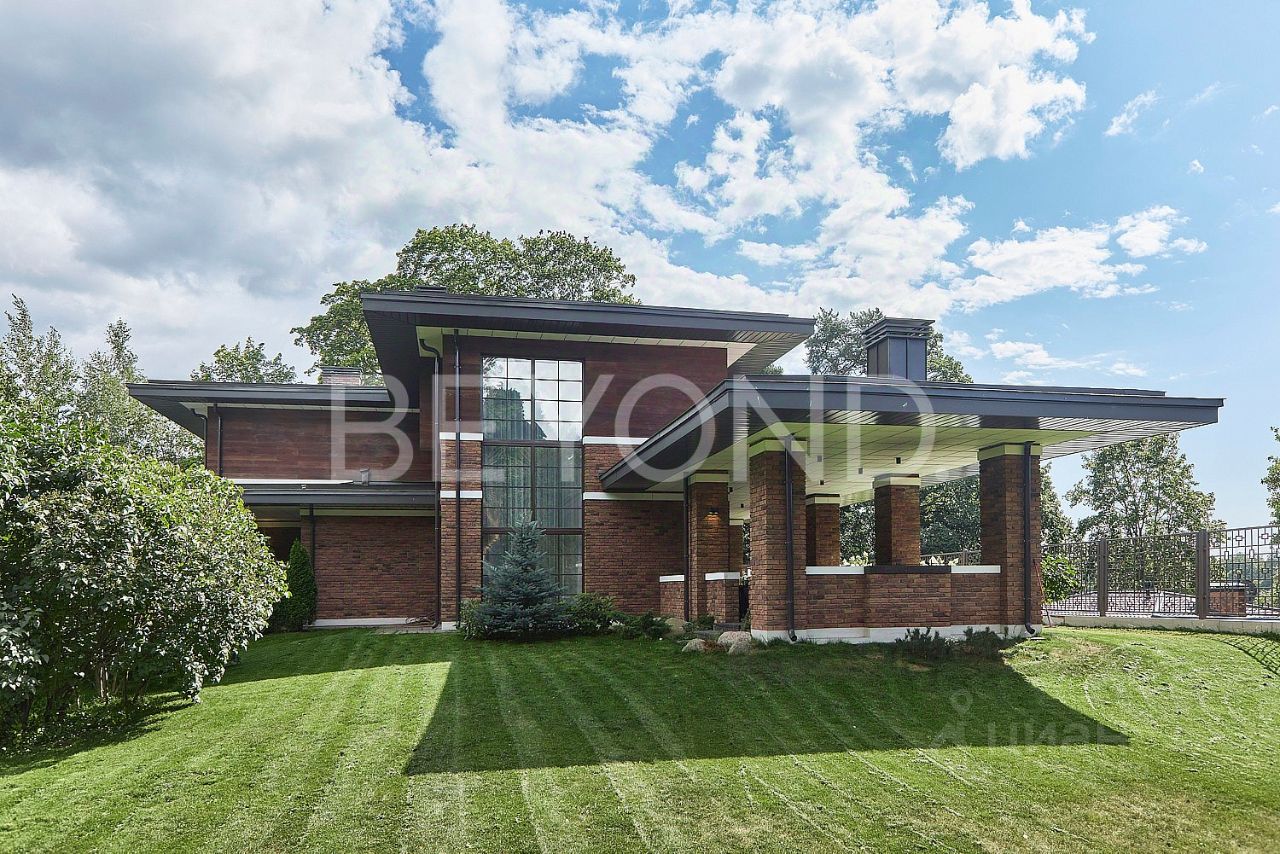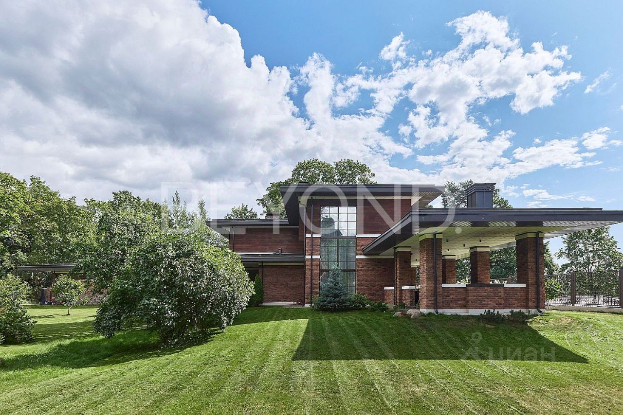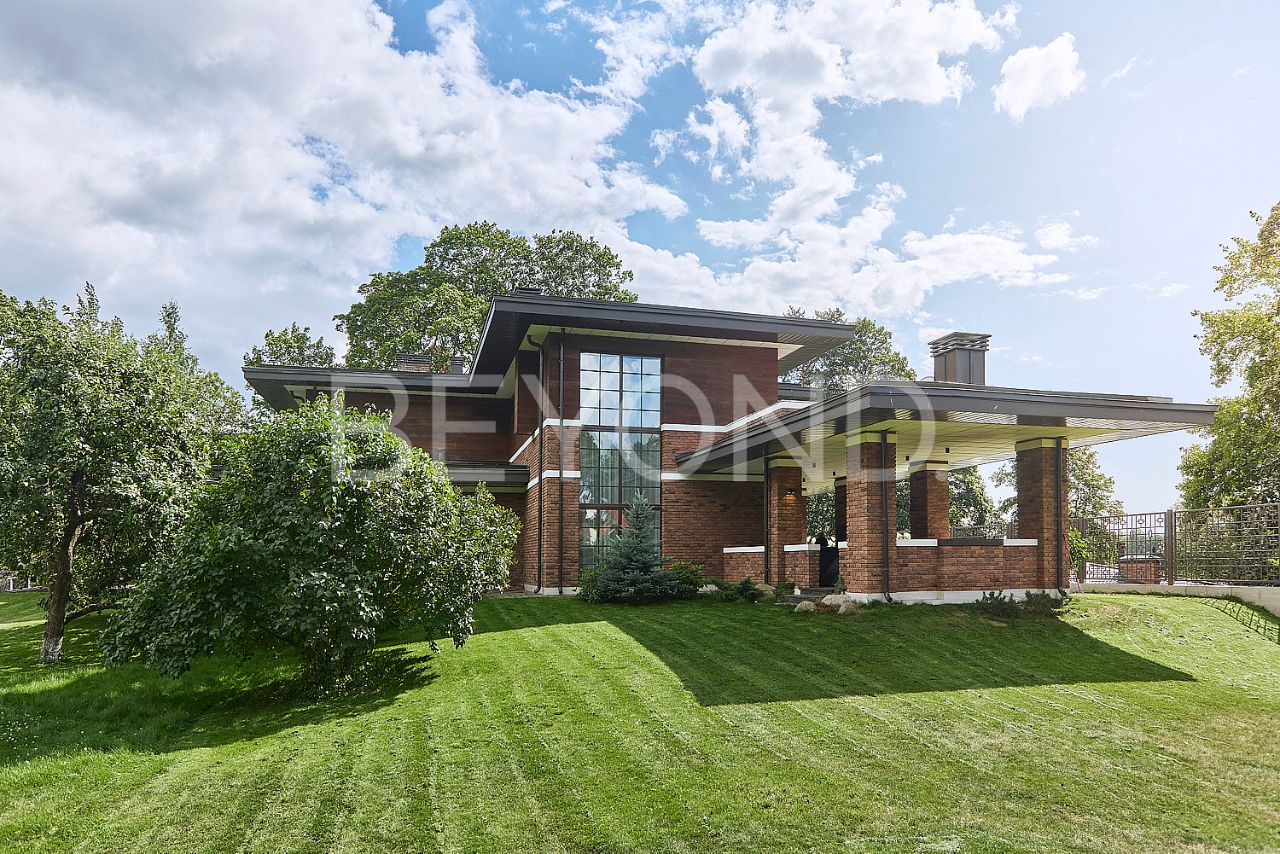 Загородный дом площадью 358 кв. м на берегу Верхнего Суздальского озера, объединяющий в себе спокойствие и умиротворение загородной жизни и близость ко всей инфраструктуре Санкт-Петербурга благодаря расположению в черте города и удобным транспортным артериям. Величественная архитектура Ф.Л. Райта в оригинальном исполнении: основательный фундамент 300 мм на бетонных сваях, несущий конструктив из красного керамического кирпича, фасад природных оттенков из немецкого кирпича ручной формовки с планкеном из термо-ясеня, дорогостоящая фальцевая кровля ручной работы - все говорит о высоком качестве материалов и их долговечности. Основная доминанта дома объемная гостиная с потолками 7 м и остеклением в пол.