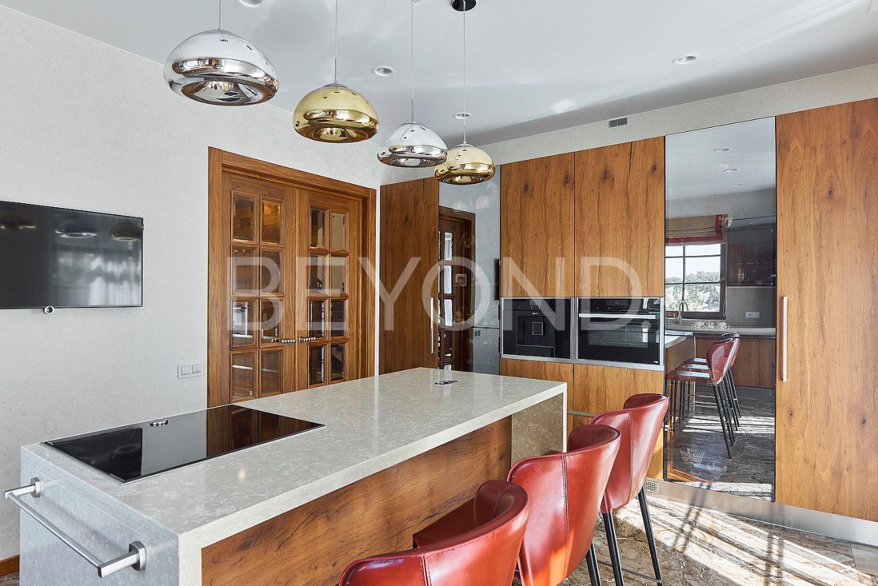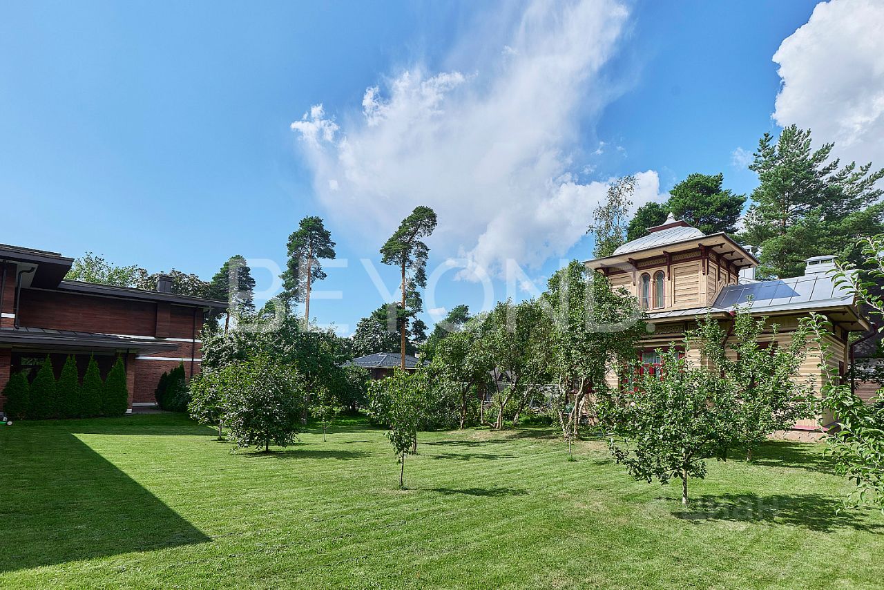Загородный дом площадью 358 кв. м на берегу Верхнего Суздальского озера, объединяющий в себе спокойствие и умиротворение загородной жизни и близость ко всей инфраструктуре Санкт-Петербурга благодаря расположению в черте города и удобным транспортным артериям. Величественная архитектура Ф.Л. Райта в оригинальном исполнении: основательный фундамент 300 мм на бетонных сваях, несущий конструктив из красного керамического кирпича, фасад природных оттенков из немецкого кирпича ручной формовки с планкеном из термо-ясеня, дорогостоящая фальцевая кровля ручной работы - все говорит о высоком качестве материалов и их долговечности. Основная доминанта дома объемная гостиная с потолками 7 м и остеклением в пол. Камин в мраморном обрамлении рядом с яркой диванной группой для вечернего просмотра кинофильмов в кругу семьи. Просторная столовая с выходом на террасу, где расположены мангальная с газовым и дровяным грилем и летняя мебель для отдыха на свежем воздухе. Напротив летней террасы расположена детская игровая площадка в максимальной видимости родительского взгляда. Второе пространство, любимое каждым членом семьи- SPA-зона c бассейном, сауной и комнатой отдыха с выходом на террасу. Второй этаж приватное пространство, где расположены: мастер-спальня с потрясающим видом на озеро, гардеробной и ванной комнатой и две детские спальни с отдельным санузлом, прачечная на этаже. На участке стоит исторически значимое отреставрированное здание Флигель дачи книгоиздателя К.И. Глазунова, где гостили Ф.И. Шаляпин и Н.А. Римский-Корсаков. Для личного удобства современной жизни в большом городе на участке построен теплый гараж 100 кв. м на 3 автомобиля с надежными немецкими воротами Hormann. Дом, который станет уютным оазисом для любителей мегаполисов, идущих в ногу со временем и прогнозирующих будущее не только свое, но и своих детей. Шувалово-Озерки - тихий спальный район города, который известен территорией с полным отсутствием промышленных предприятий. Свое название он получил от расположенных здесь 3-х Суздальских озер. Сложившаяся инфраструктура: школы, детские сады, поликлиники, торговые центры, теннисные корты, фитнес-клубы и рестораны в 5-ти минутах от дома. Один из самых больших парков расположен в 10-ти минутах ходьбы. Парк Сосновка - 302 Га с разными маршрутами для хайкинга, лыжными трассами, обилием спортивных площадок - рай для спортсменов и людей, любящих природу. Близость главных транспортных артерий КАД в 7-ми минутах, ЗСД в 15-ти минутах, позволяет быстро добраться как до любой точки Санкт-Петербурга, так и Курортного направления (Финский залив) и Ленинградской области.