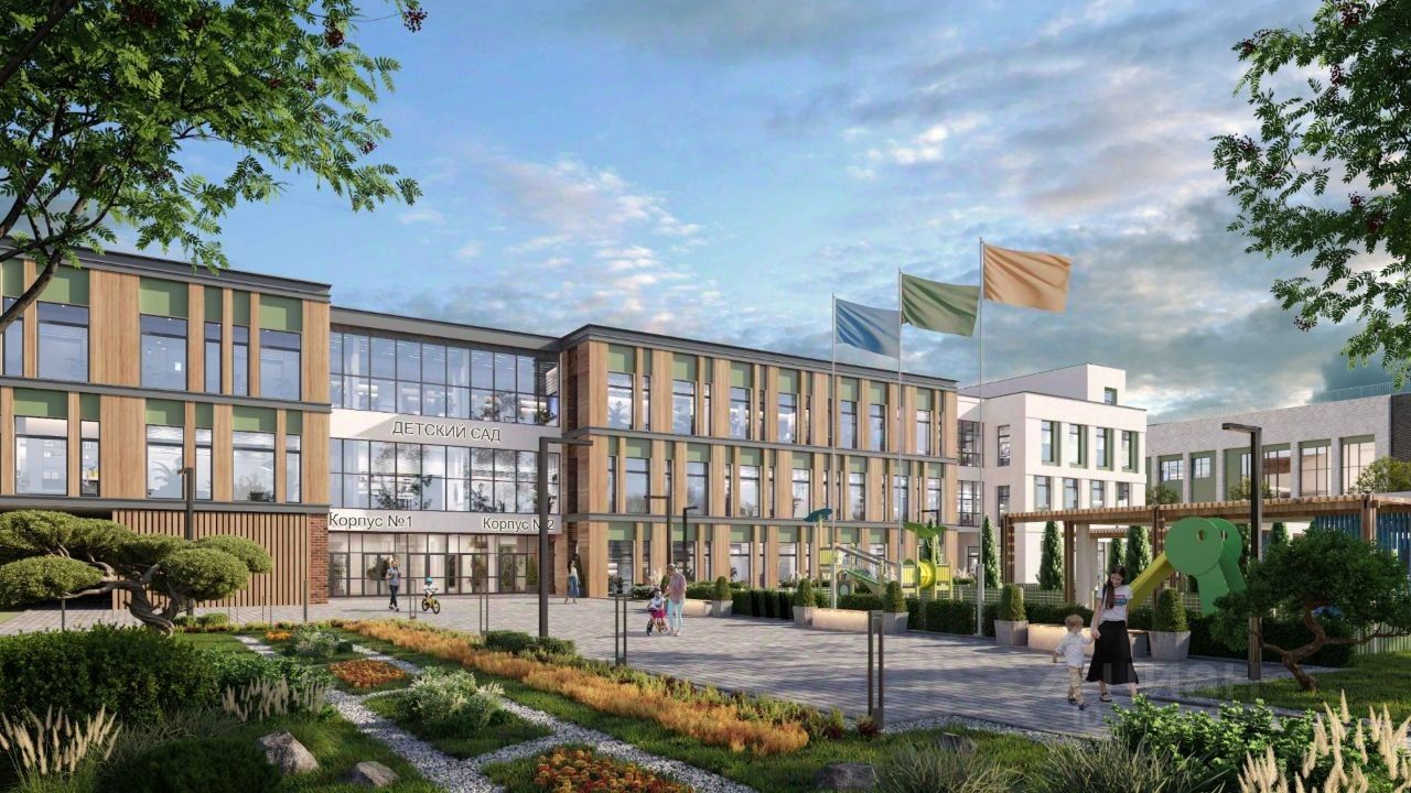 На закрытой территории комплекса выполнен ландшафтный дизайн, установлены безопасные детские площадки для детей всех возрастов, места для отдыха, зоны барбекю с беседками, спортивные площадки, установлен открытый бассейн. На территории также оборудована своя набережная протяженностью в 1,2км.