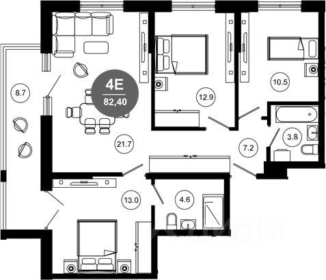 Общая площадь82,4 м2