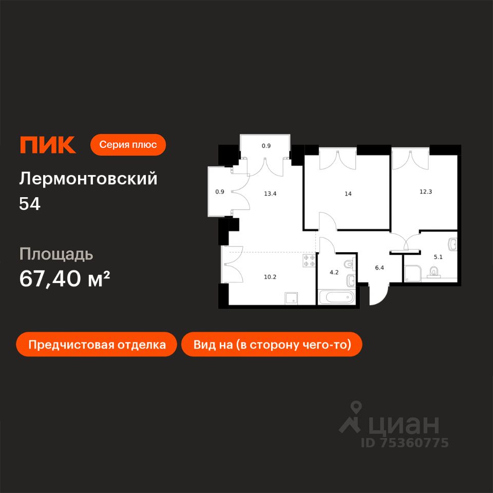 Продаётся 2-комн. квартира площадью 67,4 кв.м на 6 этаже 9 этажного дома (Корпус 1, Секция 3) проекта ПИК Лермонтовский 54. Светлый просторный подъезд на уровне земли, функциональная планировка, большие окна, предчистовая отделка.