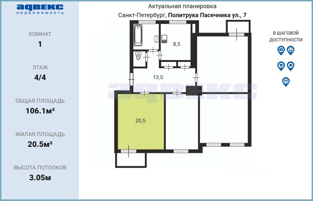 ID: 1787811 Предлагается к продаже комната площадью 20,5 м2 в просторной 4-комнатной квартире. Комната требует ремонта, что позволит вам воплотить в жизнь собственные дизайнерские решения и создать уютное пространство по своему вкусу. Наличие балкона это дополнительное преимущество, которое можно использовать для организации зоны отдыха или хранения. В комнате уже произведена замена электропроводки, что является важным этапом при проведении ремонтных работ и гарантирует безопасность эксплуатации электроприборов.