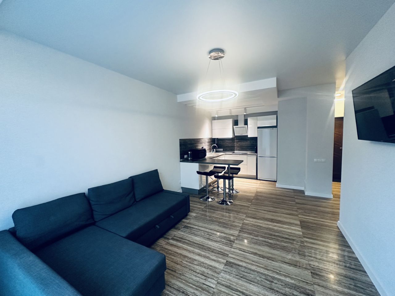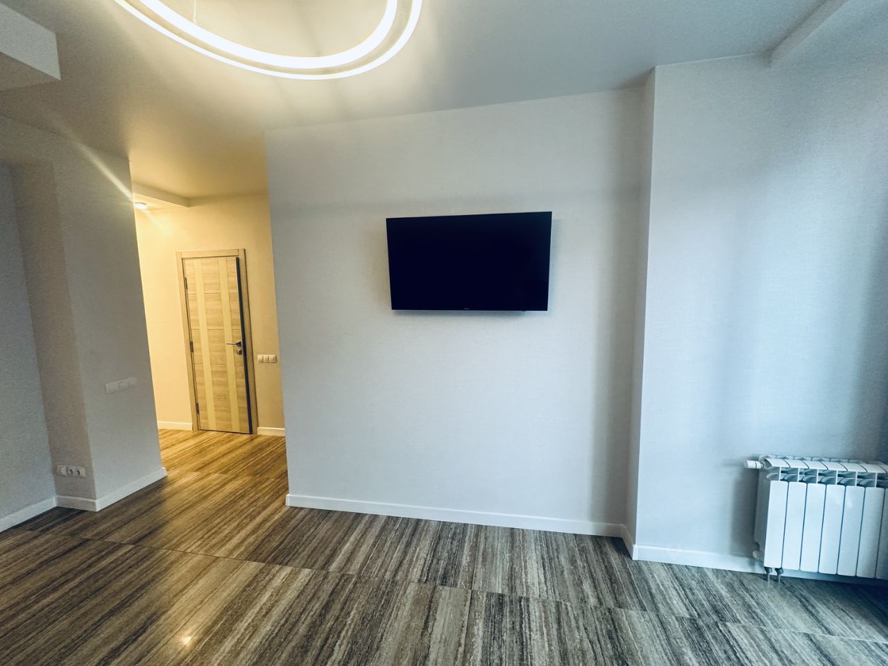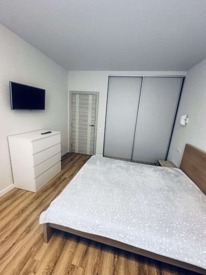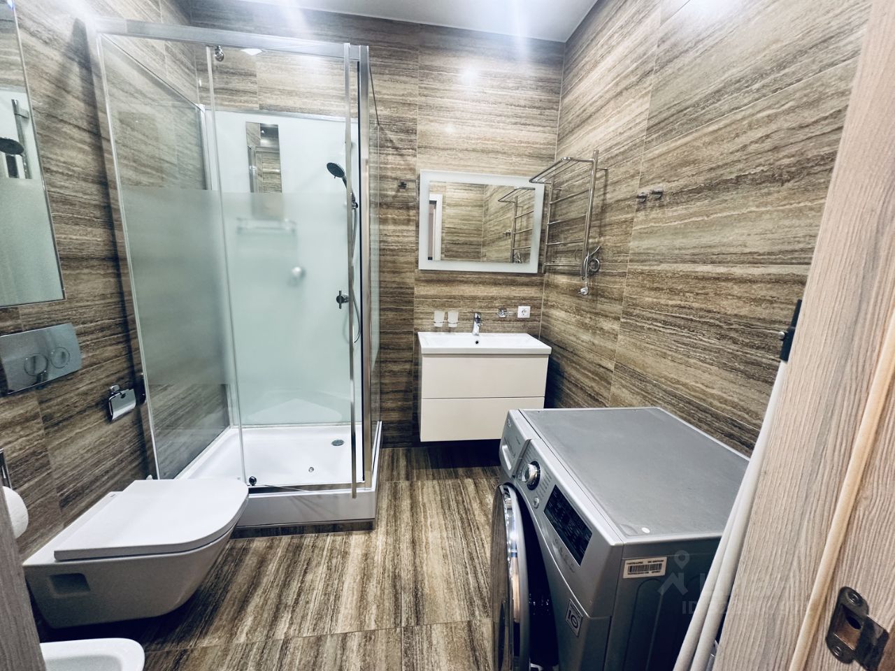 Квартира с евроремонтом, полностью готова к проживанию. В квартире есть вся необходимая техника: холодильник, микроволновая печь, посудомоечная и стиральная машины, телевизор. На кухне и в комнате присутствует мебель, что делает квартиру удобной и функциональной. Санузел совмещенный, оснащен современной душевой кабиной и биде. Окна выходят во двор, что обеспечивает тишину и комфорт.
