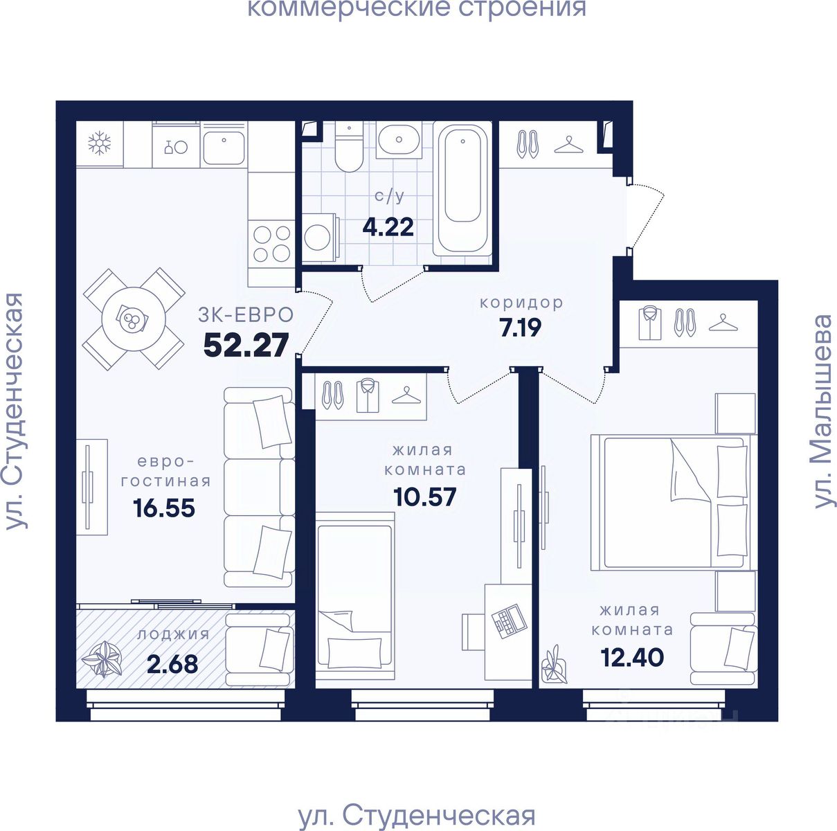 Общая площадь52,27 м2