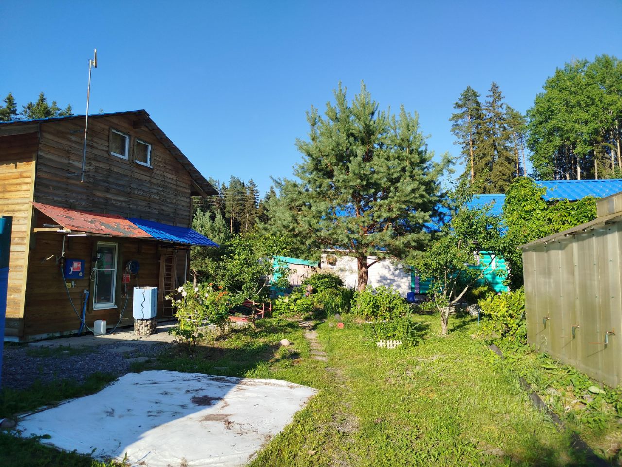 Трасса Сортавала 130км, Ленинградская область, Выборгский район, Светогорское городское поселение, Светогорск Участок 15 соток в СНТ Бумажник с хорошим заездом с двух сторон, две калитки. Расположение крайнее, у леса. Два машино-места, одно под навесом. Зимний дом 73м2 два этажа, мебель, кухня, холодильник, вода в доме, туалет в доме. Баня 5*7 из бревна на дровах, есть большое спальное место. Много плодовых деревьев, кустов, хоз. постройки, дровники Участок весь разработанный Есть свайный фундамент 4,5*7. Скважина на участке, септик на 3м2 Газовое баллонное снабжение Свет 15 КВт, электричество Автобусная остановка до Светогорска в пешей доступности 5-7 минут Рядом много озёр и река Вуокса.