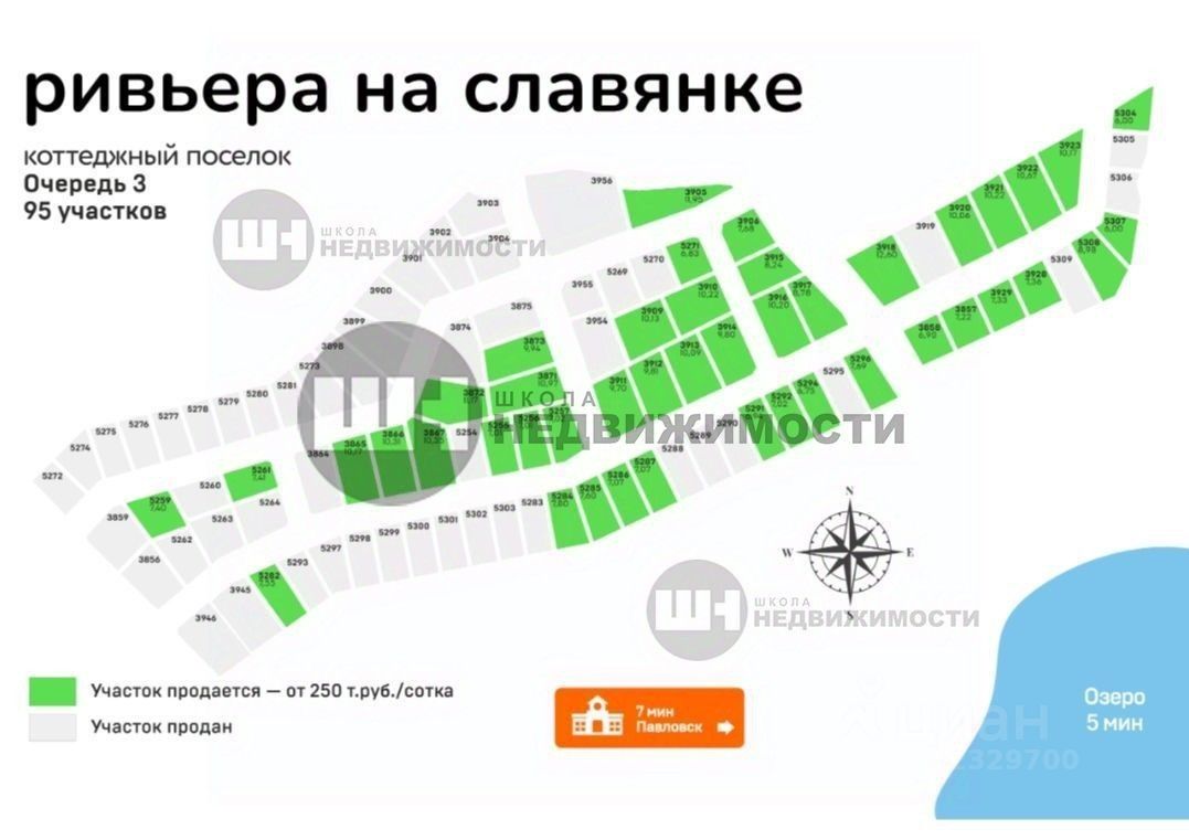 ПРОДАЁТСЯ УЧАСТОК в коттеджном поселке ''Ривьера на Славянке'' расположен в 5 минутах от города Павловск. Все участки оснащены водопроводом и электричеством.