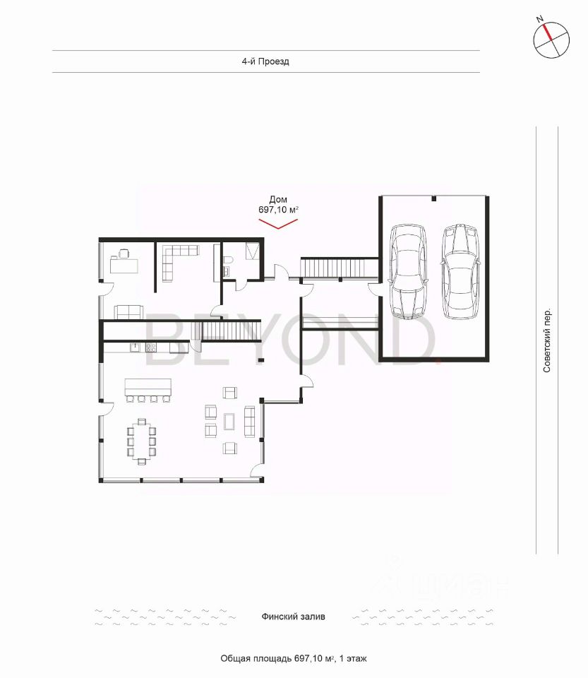 Цена аренды- 700 000 рублей + к/у. В долгосрочную аренду сдается жилой дом общей площадью 691 кв. м, расположенный в непосредственной близости к Финскому заливу и Санкт-Петербургу. В доме есть все необходимое для комфортного проживания семьи. На первом этаже расположена большая светлая кухня-столовая, оснащенная функциональной современной бытовой техникой. Гостиная со вторым светом и выходом на террасу, кабинет, гостевой санузел и крытый гараж на 2 машиноместа. На втором этаже - большая спальня с выходом на террасу, оснащенная джакузи, гардеробной зоной и собственной ванной комнатой. Две детские комнаты с гардеробными и игровыми зонами.