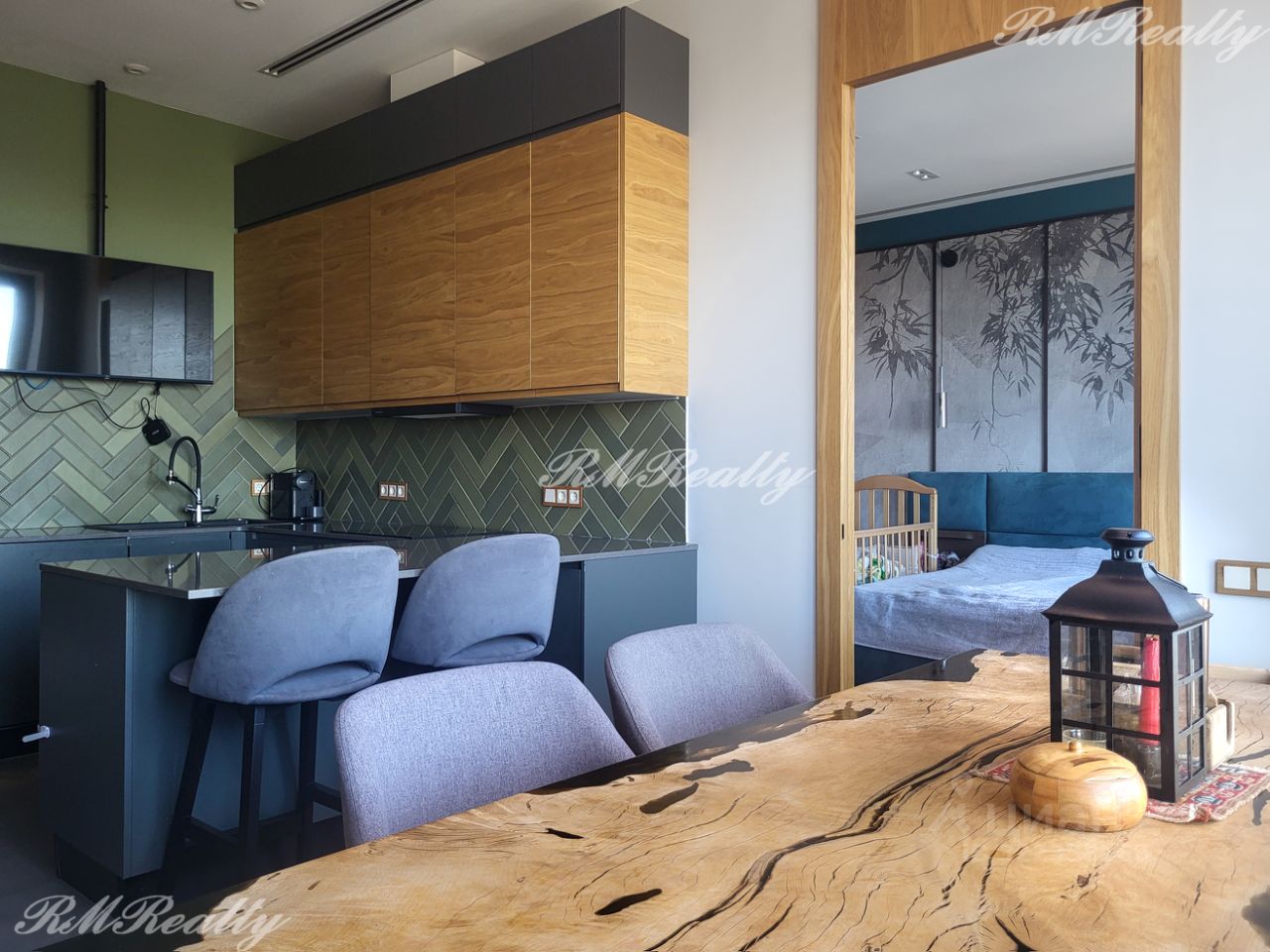 - Площадь: общая 177м² из них терраса 44м². - Этаж: 19 - Санузел: 3 совмещенных - Ремонт: дизайнерский ремонт в скандинавском стеле.