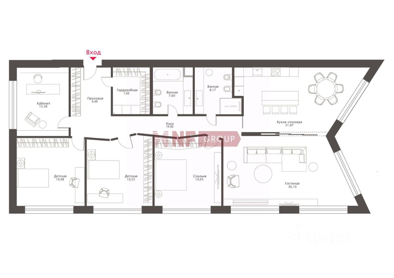 Лот: 40221. Эксклюзивно в продаже только у NF GROUP. В продаже видовой семейный апартамент с новой отделкой в элитном комплексе ''Кленовый дом'' на Пречистенской набережной. Планировка: гостиная с зоной кухни, 3 спальни, кабинет (гостевая спальня), 2 ванные комнаты, гардеробные. Выполнена новая отделка по авторскому дизайн-проекту с применением натуральных материалов, установлена брендовая мебель, бытовая техника, сантехника и светильники, биокамин. Из окон с панорамным остеклением открывается красивый вид на Москву-реку, парк Музеон, памятник Петру I. В комплексе предусмотрен подземный паркинг с возможностью покупки машино-мест и кладового помещения. ''Кленовый дом'' - современный клубный дом на престижной Золотой миле . Презентабельная входная группа, охрана и видеонаблюдение. В пешей доступности музеи, школы и галереи, храм Христа Спасителя, известные рестораны, фитнес-клубы, уникальный открытый бассейн ''Чайка''.