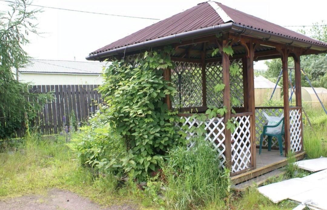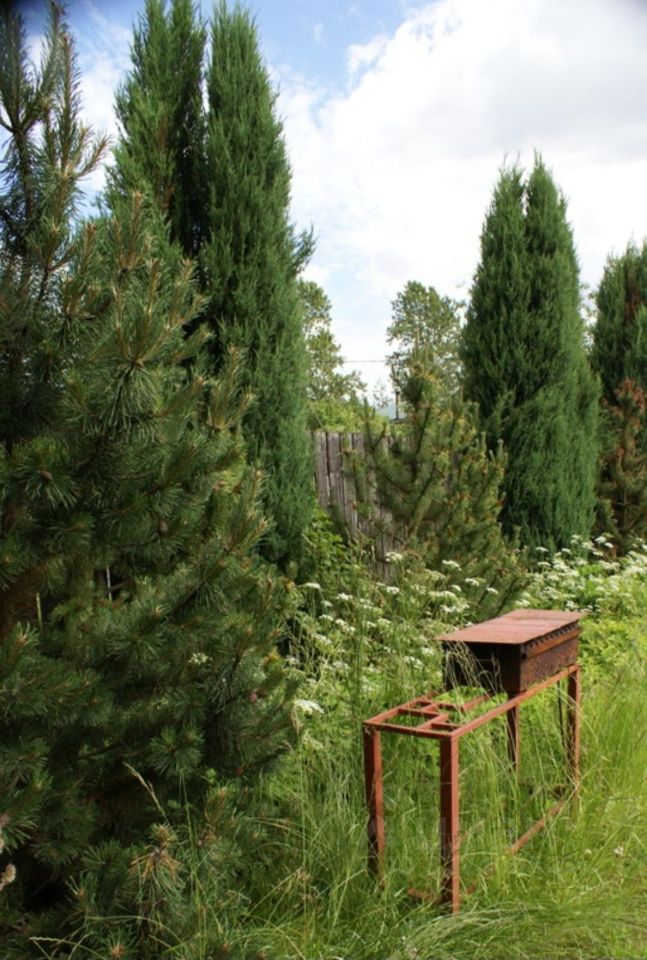 Участок огорожен, на территории высажены красивые хвойные растения, плодовые деревья и кустарники, цветы. Есть беседка, детские качели, место для барбекю, площадка для парковки двух автомобилей.