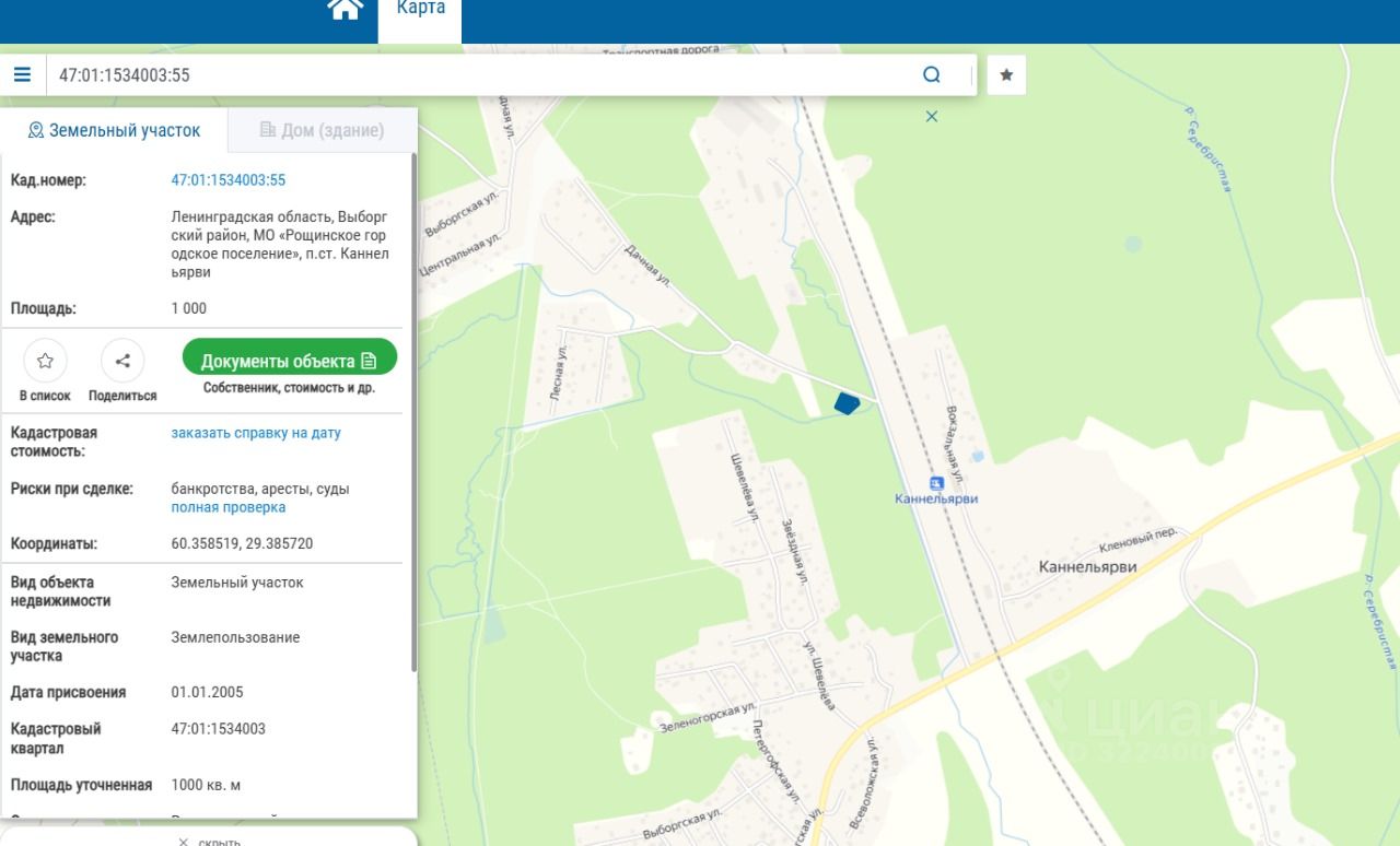 Кадастровый номер 47:01:1534003:55