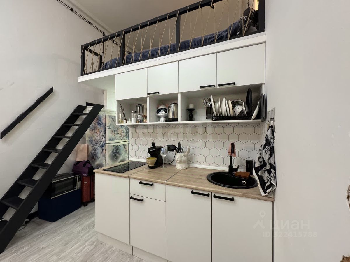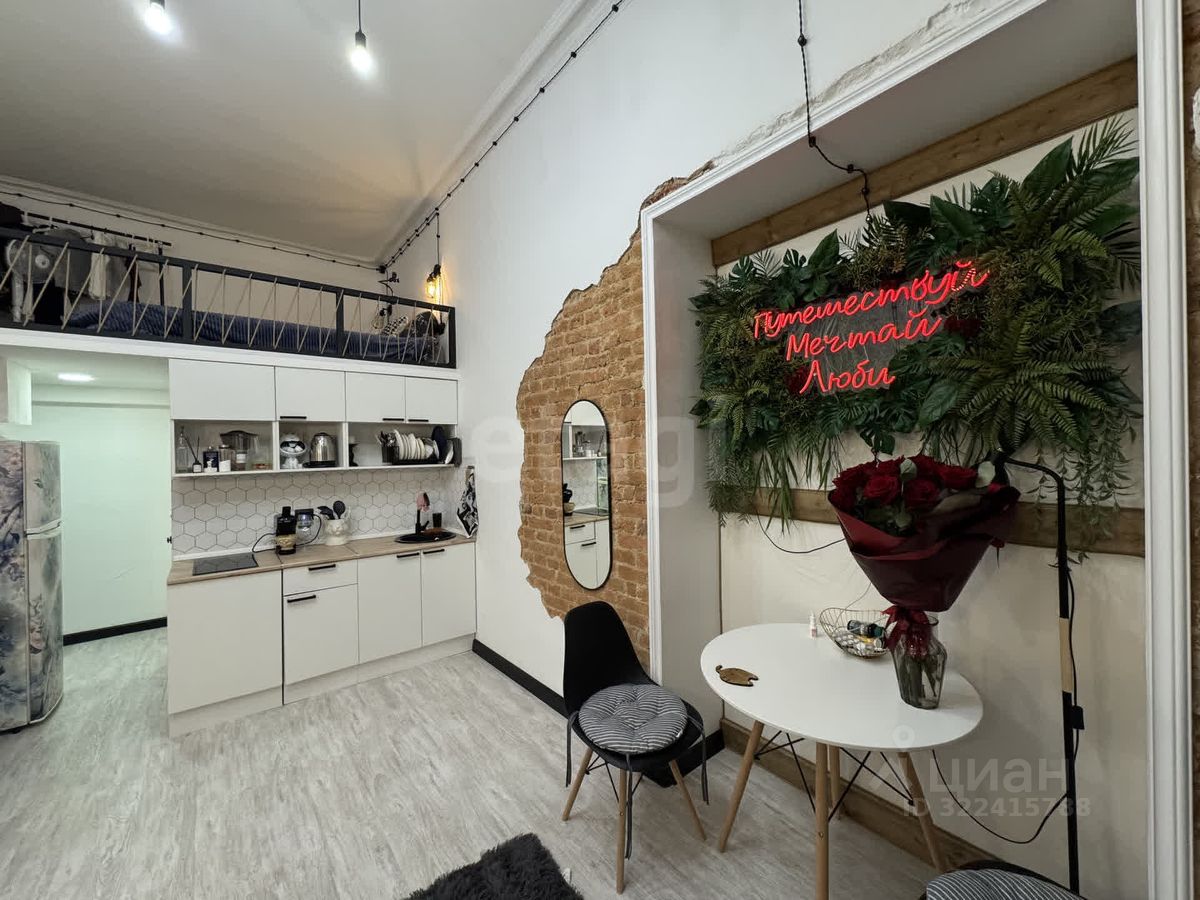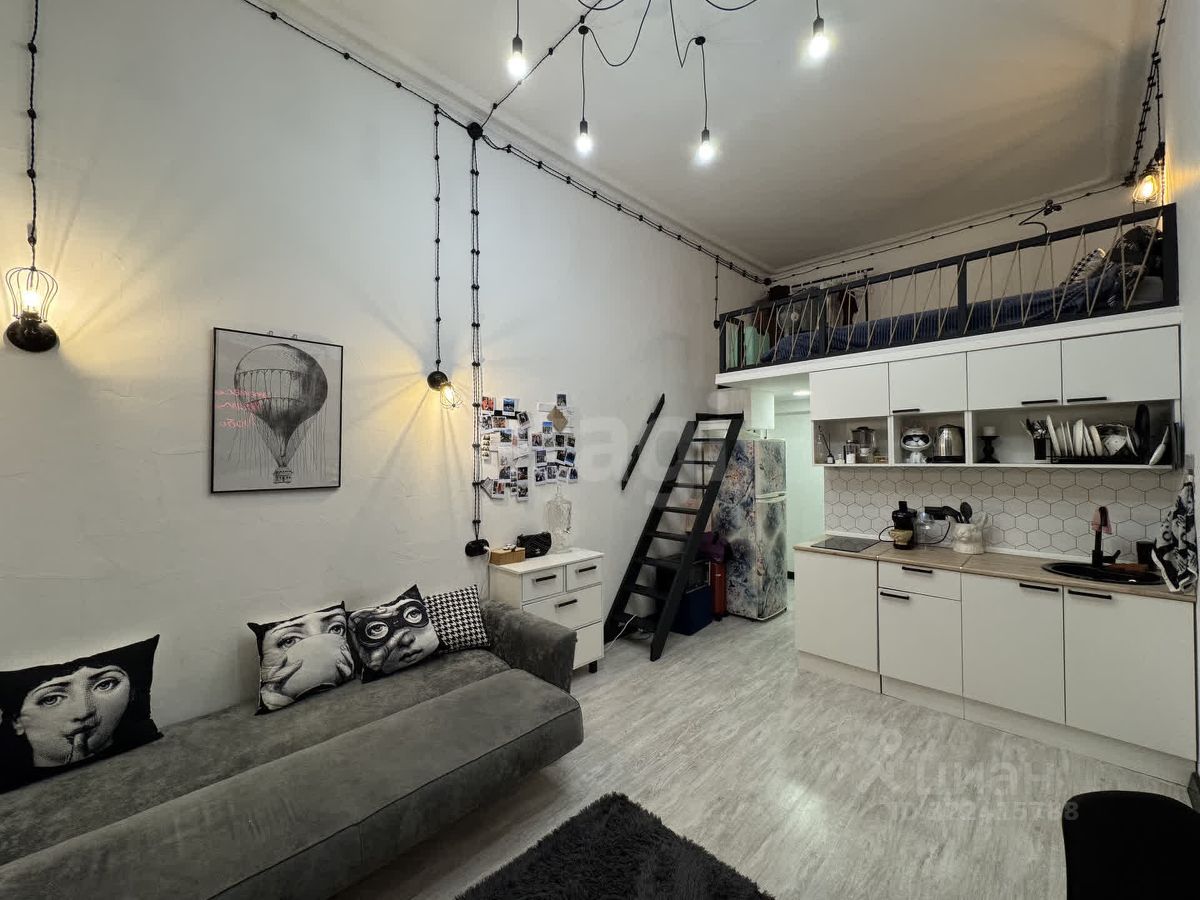 В студии сделан свежий ремонт, потолок 4 метра, есть спальное место на втором ярусе (высота второго яруса 1.7м.). При продаже остаетьсявся тенхика и мебель.