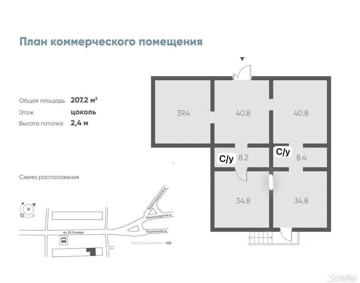 Сдается в аренду коммерческое помещение в цоколе жилого дома 195 м в городе Гатчина с населением более 87 тыс человек.