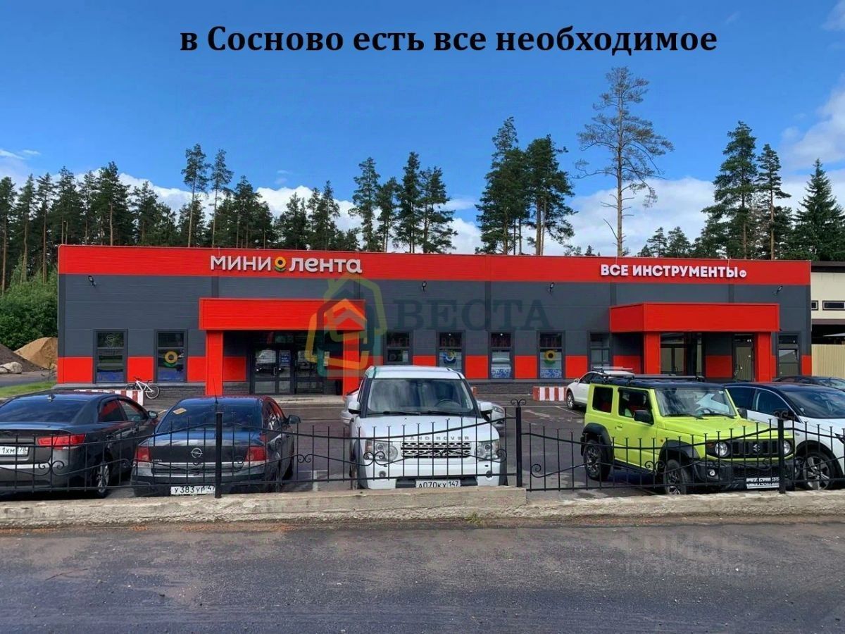 Развитая инфраструктура: В 7 минутах от участка вся инфраструктура поселка Сосново (больница, сетевые магазины, кафе, заправка, детские площадки). В 5 минутах езды находится всесезонный курорт Игора (отель, рестораны, спа, бассейн, лыжные трассы с подъемниками для детей и взрослых, каток, озеро с шезлонгами и рестораном) и ралли мото центр Игора Драйв. В 10 минутах езды находится спортивно-развлекательный центр Норвежский парк (самый большой верёвочный парком сети Norway Park в России). До озера Большое Борково пешком 35 минут (3 км) или 15 минут на авто.