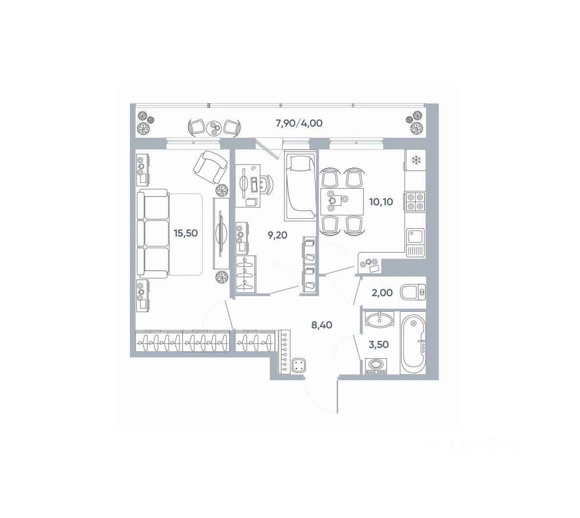 Предусмотрено: много места для хранения вещей, два сан.узла, просторная лоджия.