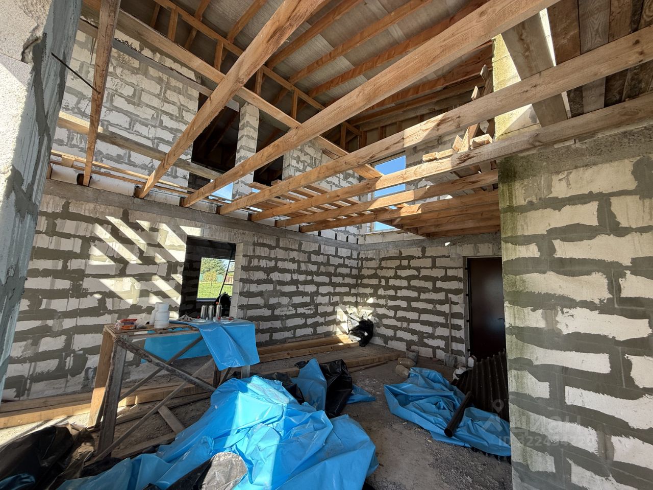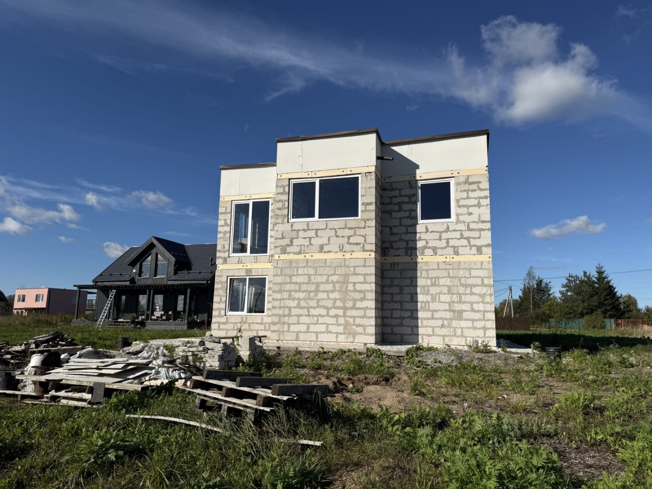 Дом построен из газобетона, стоит на утепленной шведской плите. Высота потолков -2,7