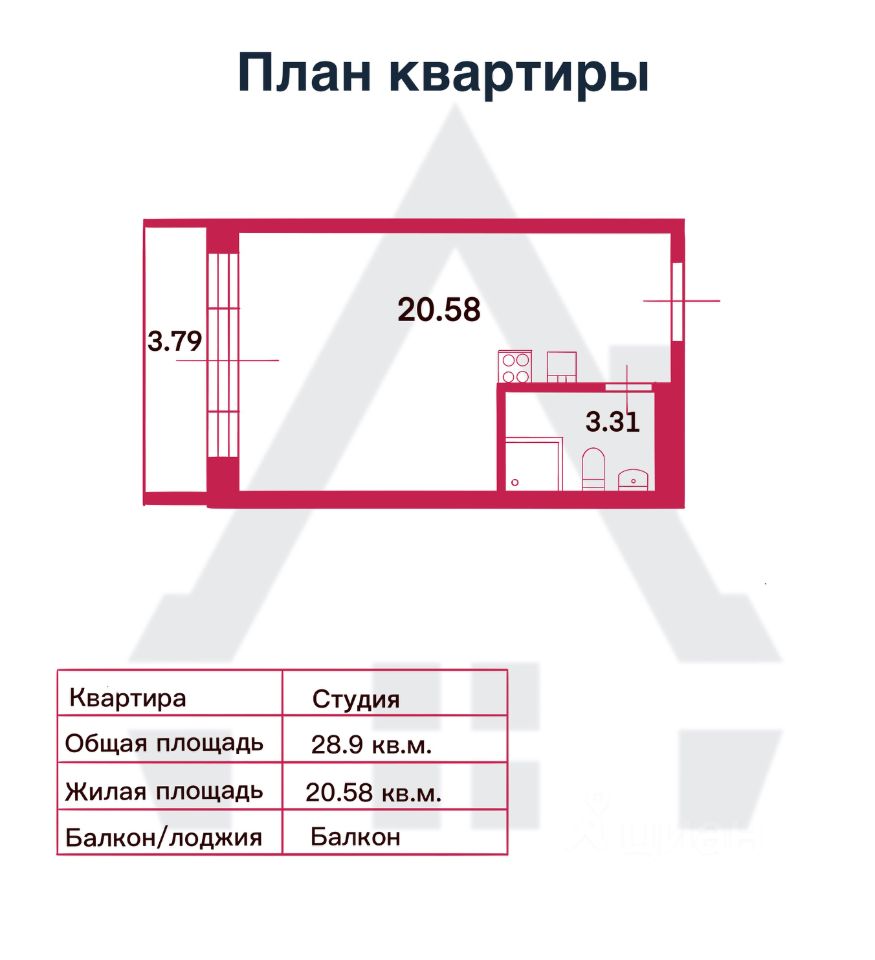 В продаже апартаменты-студия 28,9 м² Апартаменты для сдачи в аренду. Не для проживания