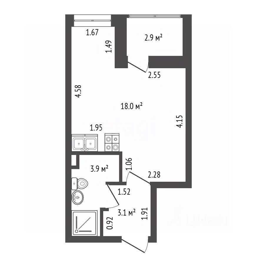 Просторная квартира-студия площадью 35 кв. м в новом ЖК ''Солнечный город'' предлагает рациональное использование пространства за счет тщательно продуманной планировки.