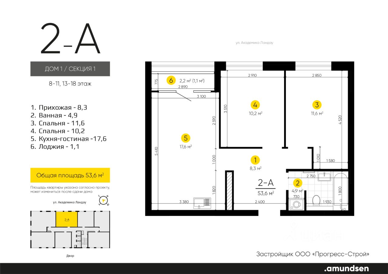 продам 2-к, Академика Ландау, 39 341 000 ₽