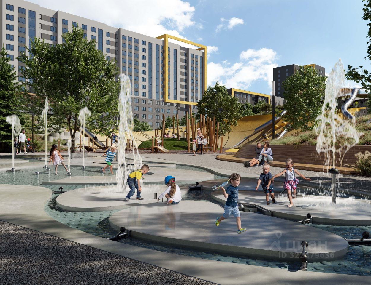 4 СЕЗОНА: Двор-трансформер позволяет активно использовать все площадки круглый год. В холодное время года санки, коньки и снежные бои за главную башню. В теплое время источник наполняет двор водой и прохладой. Работают площадки для активных игр и спокойного отдыха.