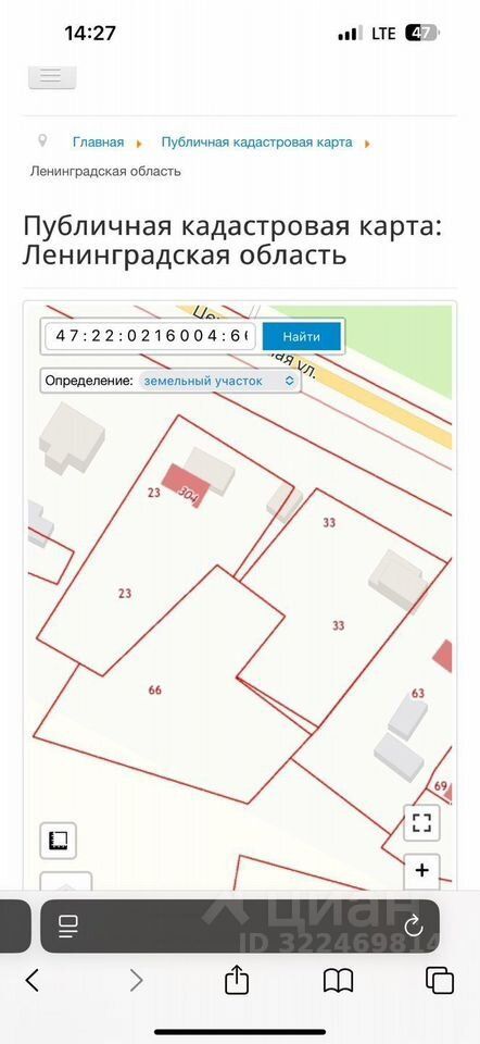 На кадастровом плане участок номер 66.