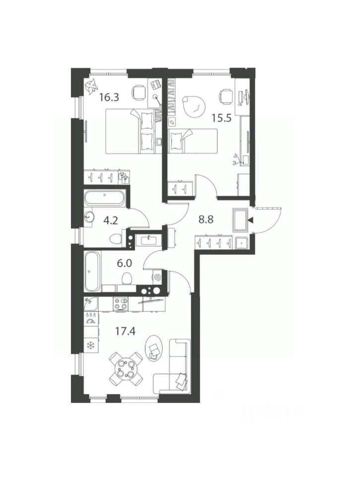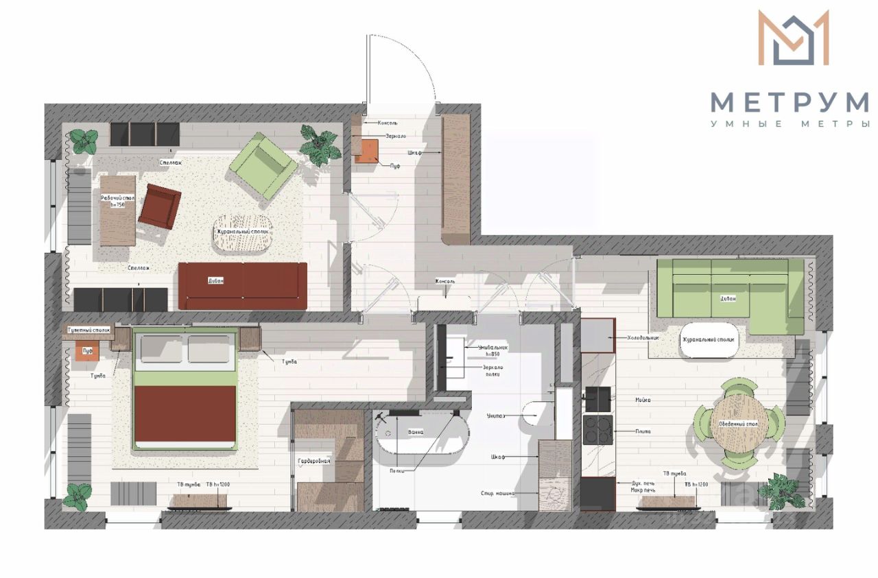 - планировка с БОЛЬШОЙ кухней-гостиной.