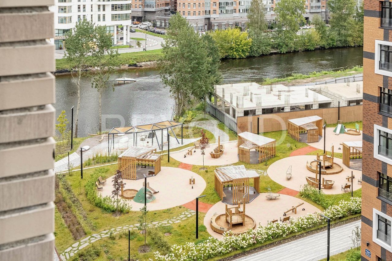 Рядом с домом расположена новая школа с двумя бассейнами, несколько муниципальных и частных детских садов, школа гимнастики, бойцовский клуб, яхт-клуб и многие другие заведения, которые являются неотъемлемой частью жизни современного активного жителя мегаполиса.
