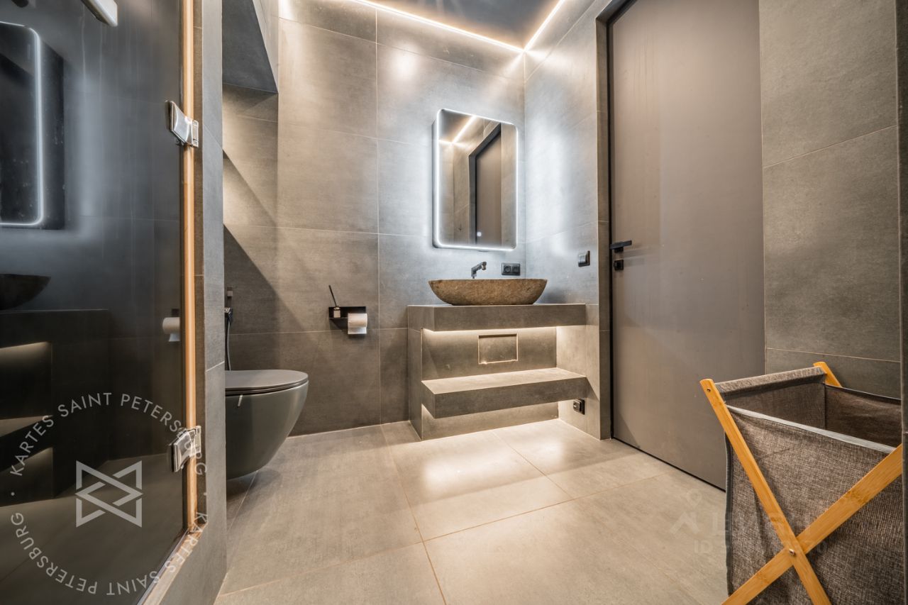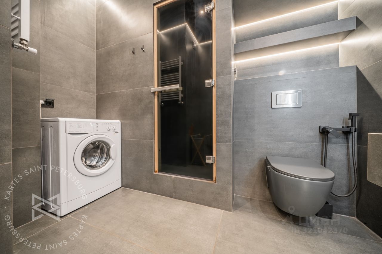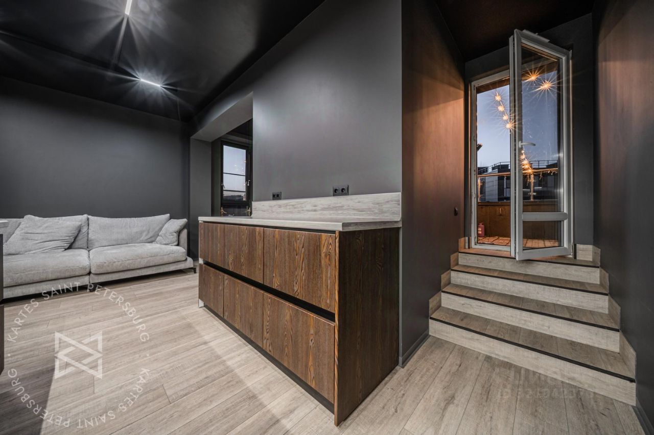 В квартире сделан свежий стильный ремонт. Пространство четко поделено на гостевую и хозяйскую зону, с одной стороны кухня-гостиная 29 метров с выходом на террасу, своим полноценным санузлом и сауной, а с другой 2 жилые комнаты, одна из которых, это мастер спальня со своим совмещенным санузлом (с ванной). Что еще нужно от современной квартиры?