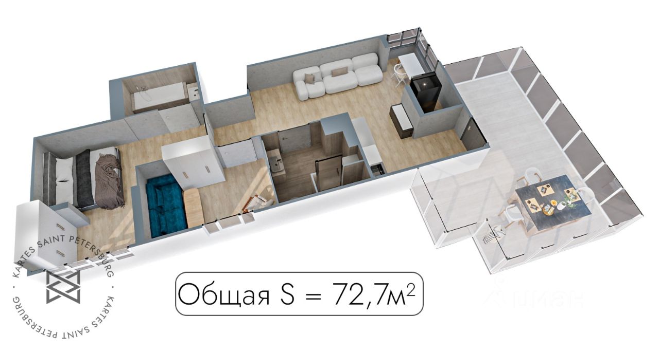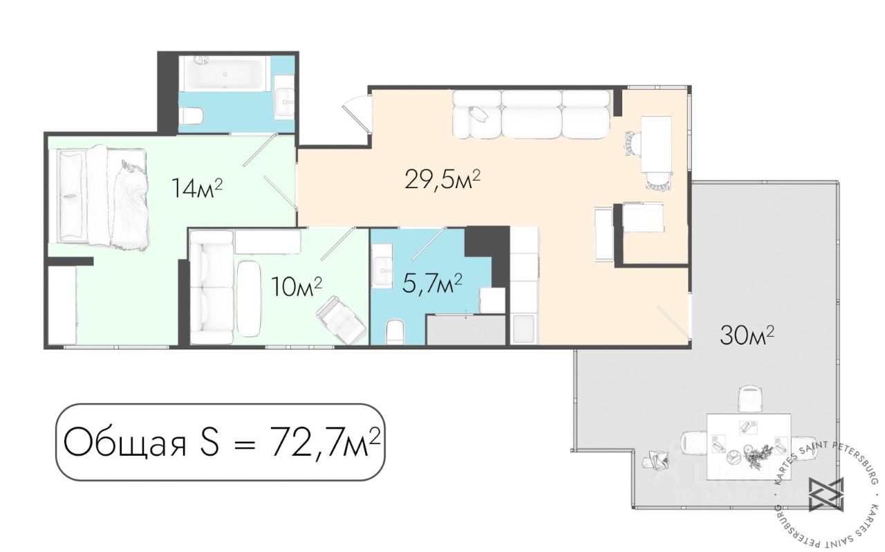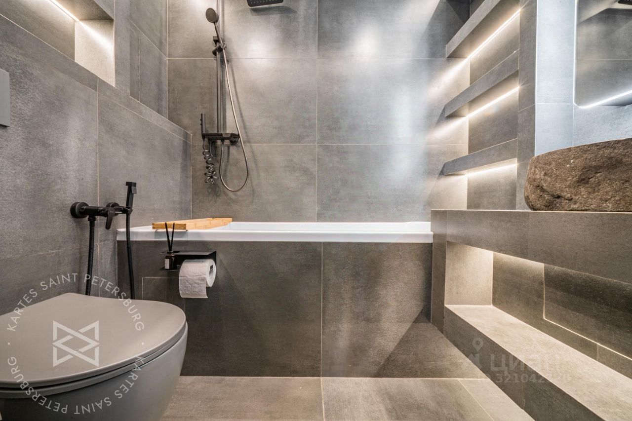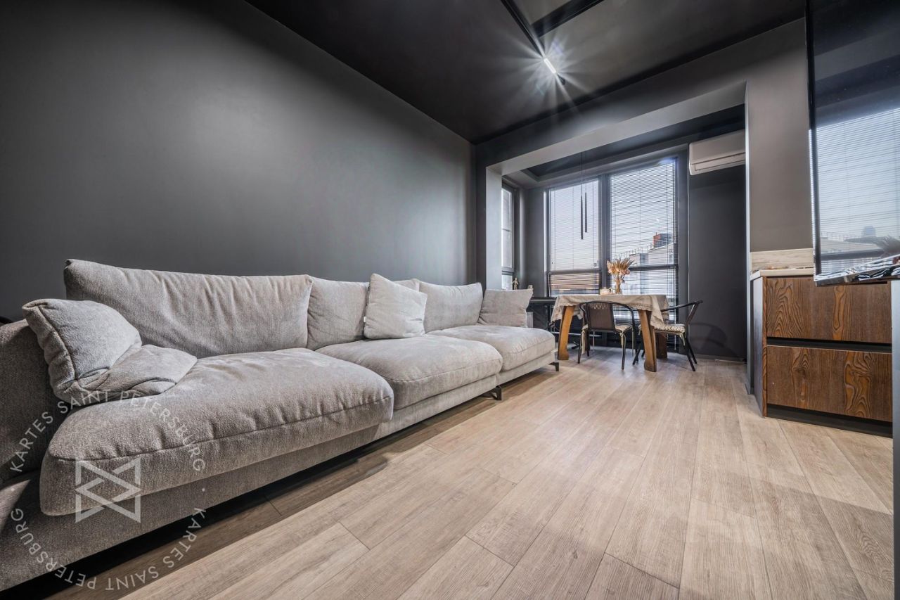 В квартире сделан свежий стильный ремонт. Пространство четко поделено на гостевую и хозяйскую зону, с одной стороны кухня-гостиная 29 метров с выходом на террасу, своим полноценным санузлом и сауной, а с другой 2 жилые комнаты, одна из которых, это мастер спальня со своим совмещенным санузлом (с ванной). Что еще нужно от современной квартиры?