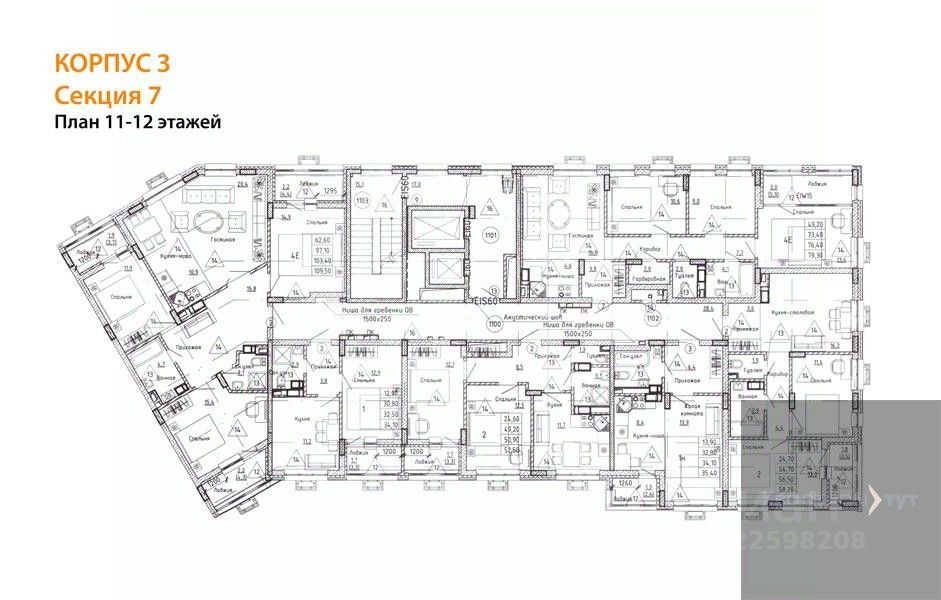 Квартира: 3 к 76,40 кв.м., 11 этаж в комплексе Ключи CLUB, 3 очередь, корп.3, сдача: 3кв. , этажей: 14, адрес Воронеж г., Остужева ул., д. 52/5, Застройщик: Новый код.